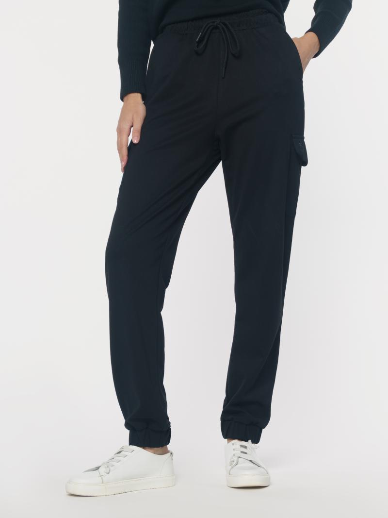 Черные женские брюки Freedom by Arber созданы из эластичной ткани на основе вискозы. Модель карго с двумя накладными карманами с клапаном на левом клапане шелковая вышивка логотипа Freedom. Силуэт прямой, комфортный, застежка на молнию и пуговица, пояс на резинке, внизу на резинке. При деликатном уходе изделие не теряет цвет и держит форму. Брюки базового цвета удачно впишутся в гардероб кэжуал вместе, трикотажем или рубашками.