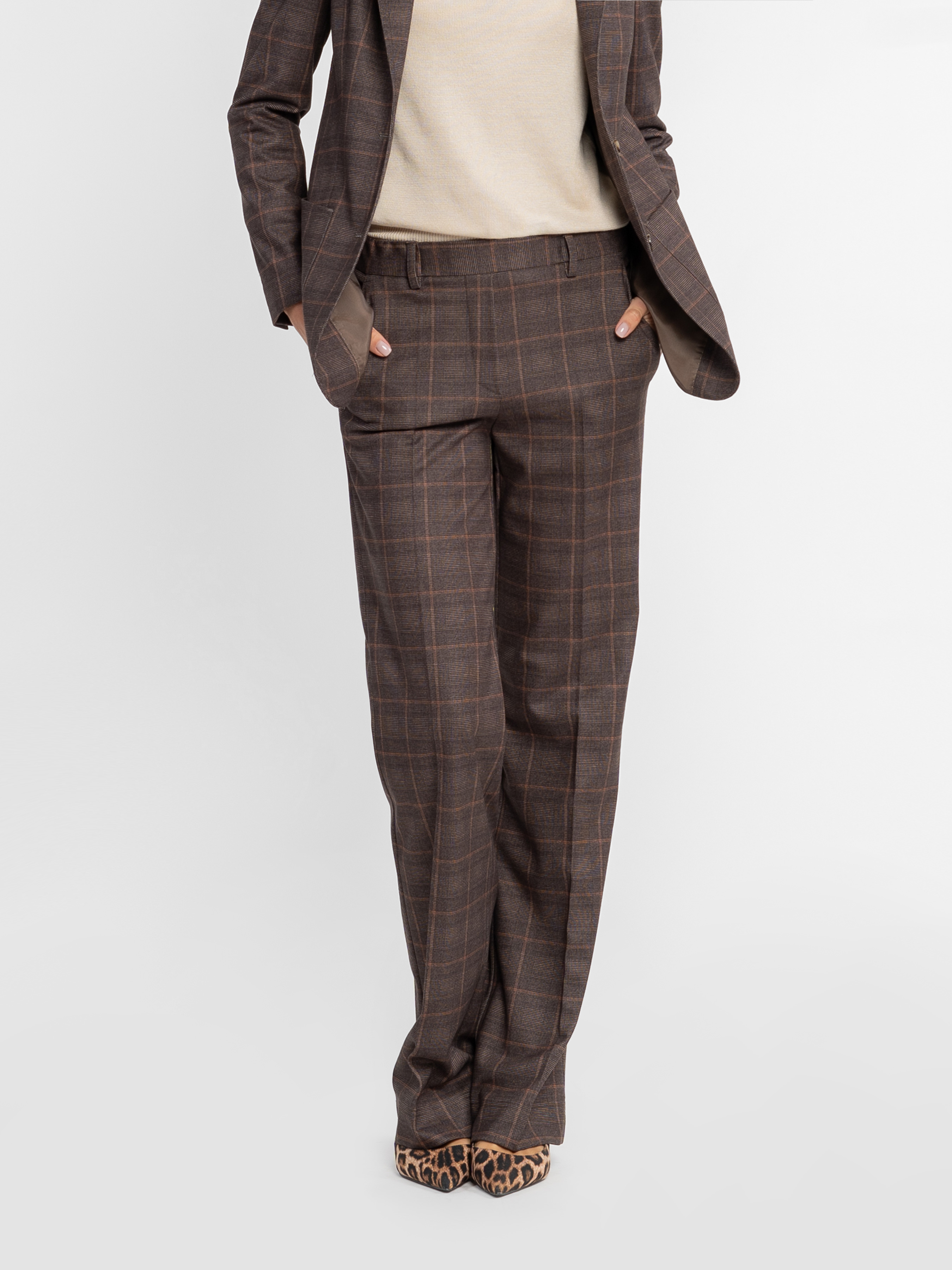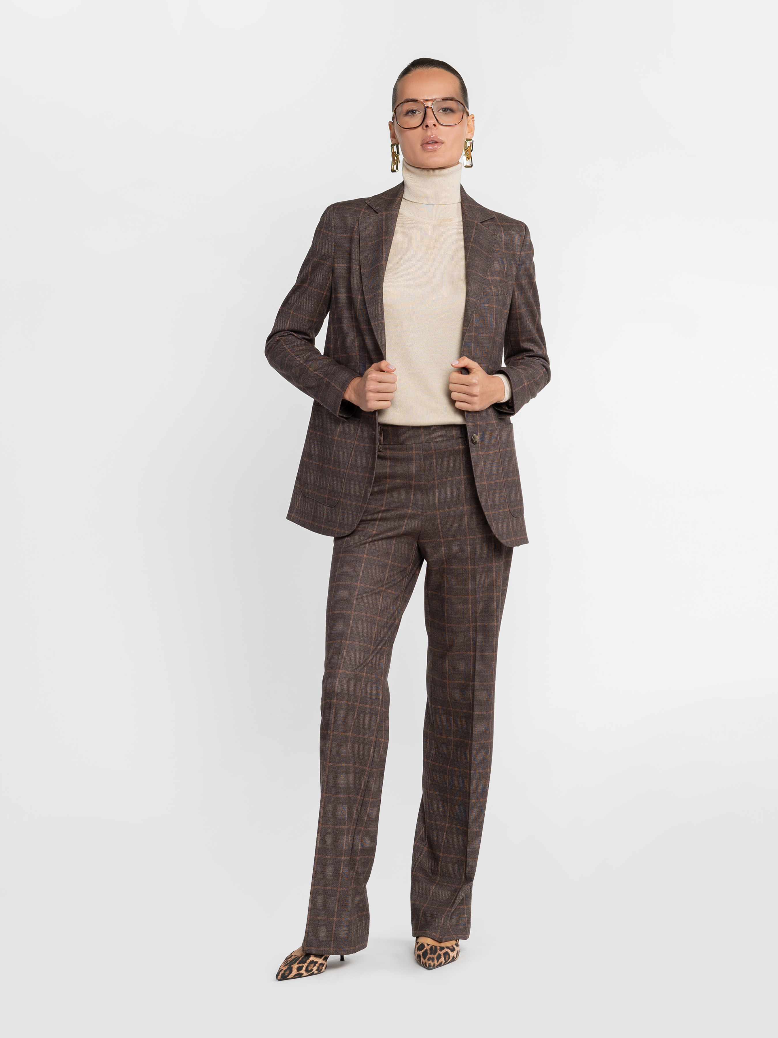 Брюки женские W01.03.39.531 Arber коричневые в клетку прямые трикотажные