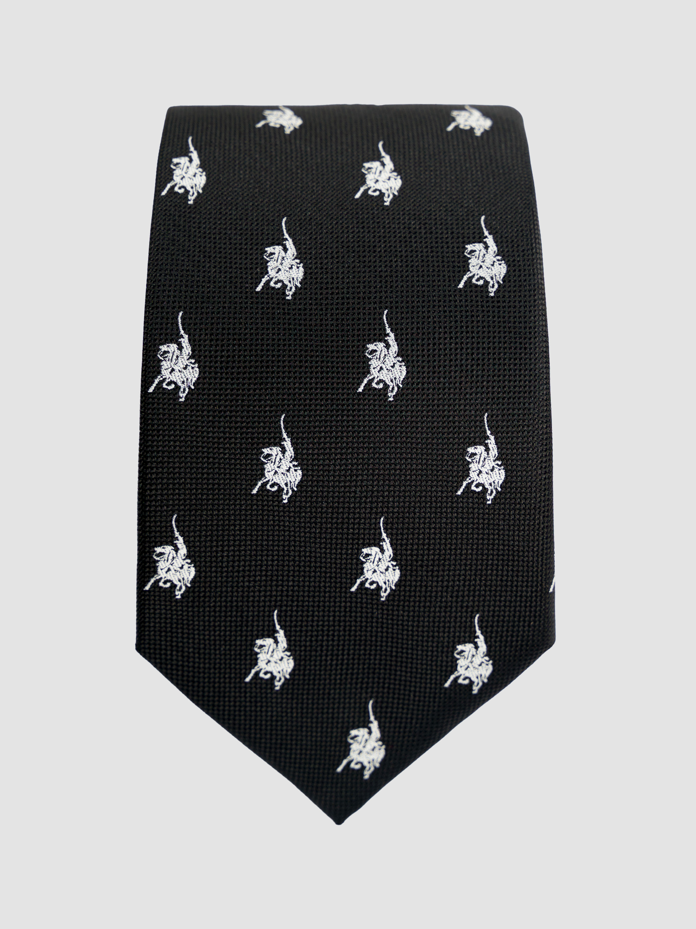 Мужской галстук Arber черного цвета, с изображением логотипа Freedom - казак на коне, изготовлен из шелковистой на ощупь ткани и сшит вручную. Этот галстук создан для мужчины, который хочет выделяться естественным элегантным видом.