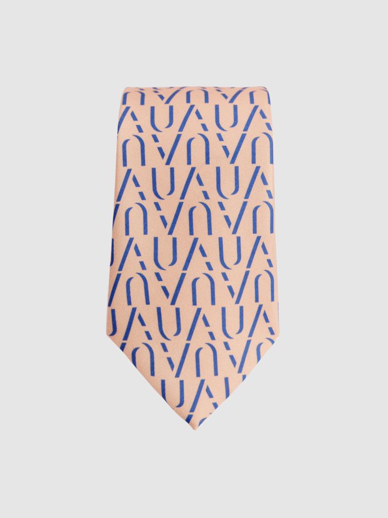Патриотический галстук Arber бежево-синего цвета, изготовлен из шелковистой на ощупь ткани и сшит вручную. Декорирован паттерном UA коллекции Freedom, как символ борьбы за свободу и независимость Украины.