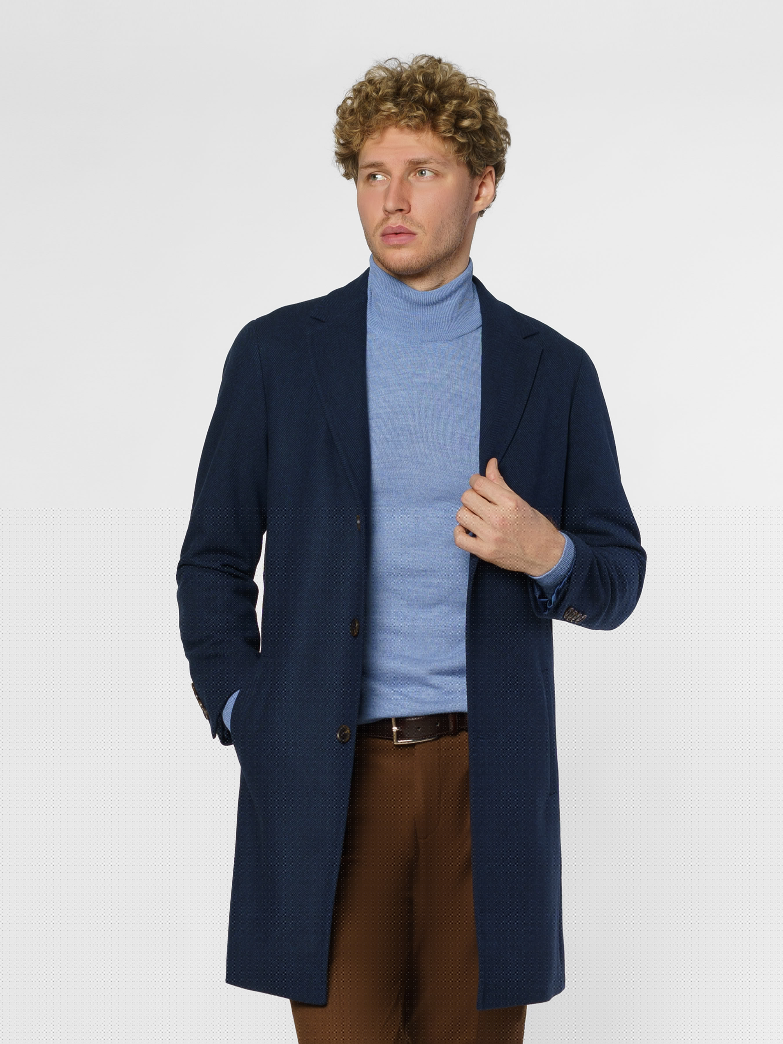 Мужское пальто Arber, синего цвета, сделано из ткани на основе шерсти, с микродизайном "ёлочка". Ткань мягкая, хорошо сохраняет тепло, подкладка стеганая, на основе современного синтетического утеплителя Hollowsoft, изготовленного по уникальным технологиям: обладая тонким волокном, сохраняет высокую теплоизоляцию, согревая в холодное время. Однобортная модель прямого силуэта, с застежкой на 3 пуговицы, с прямыми лацканами и двумя прорезными карманами. Пальто современного дизайна и универсального цвета удачно сочетается как с деловой одеждой, так и с одеждой в стиле кэжуал.