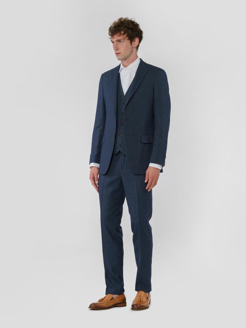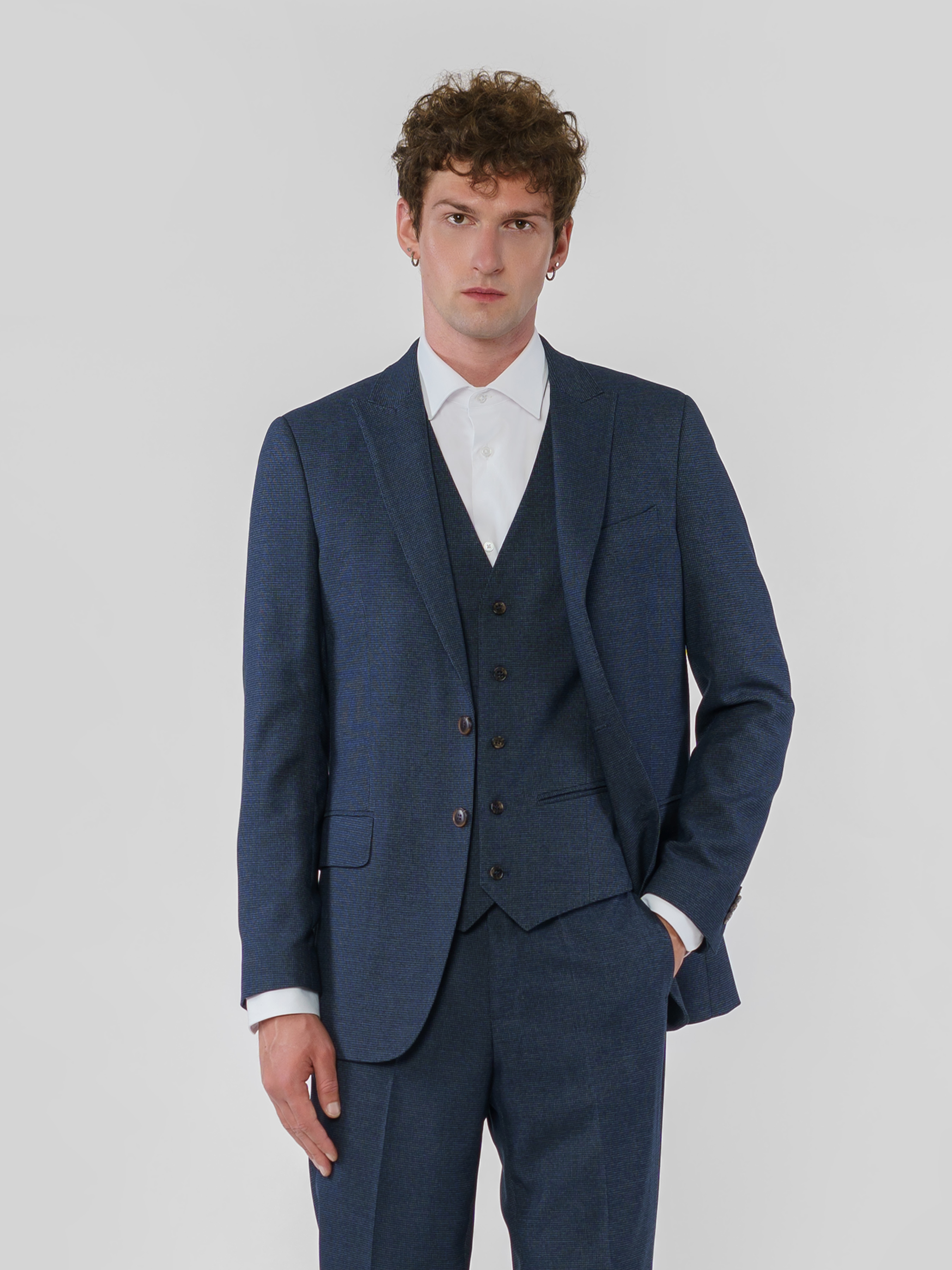 Мужской стильный синий пиджак Arber приталенного силуэта, изготовлен из мягкой ткани на основе вискозы. Инновационные добавки обеспечивают свободную циркуляцию воздуха, а ткань практичная, не мнется и устойчива к загрязнениям. Модель имеет застежку на 2 пуговицы, острые лацканы, два кармана, две шлицы. Для создания стильного комплекта можно добавить жилет M20.01.09.431 и брюки M31.01.09.431 из той же ткани, чтобы создать стильный и элегантный образ, который можно дополнить тонким трикотажем или рубашкой. Модель на фото в размере 48. Рост: 190 см. Параметры: 94/73/93