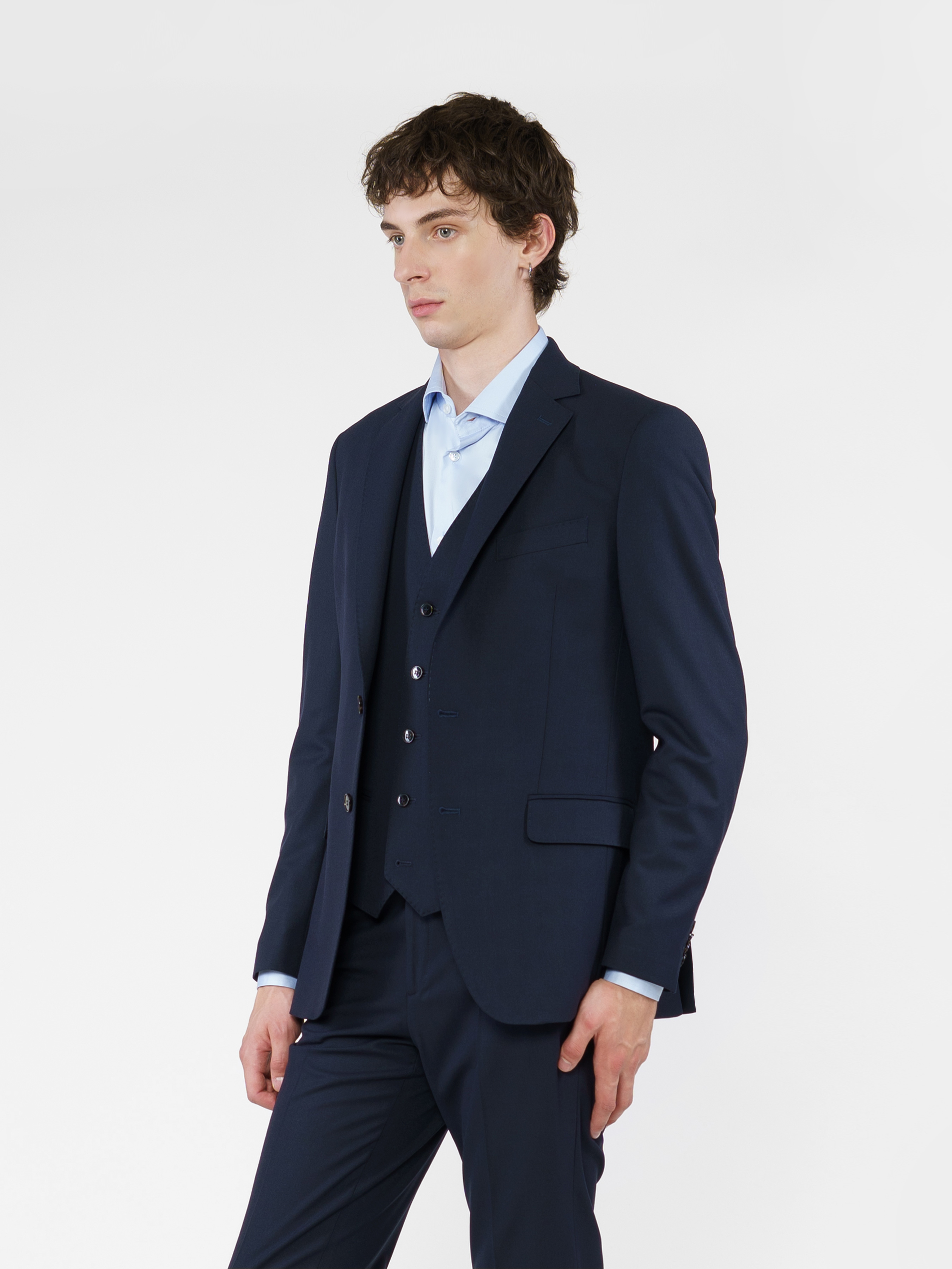 Мужской темно-синий пиджак Arber, изготовленный из инновационной ткани с добавлением вискозы, обеспечивает комфорт и устойчивость к износу. Модель имеет прилегающий силуэт, однобортный с прямыми лацканами, застегивается на 2 пуговицы, дополнен двумя прорезными карманами с клапаном. Пиджак прекрасно сочетается с брюками MB01.02.09.00, в этом костюме утром можно создать формальный образ, а вечером, сняв галстук, можно отправиться на светское мероприятие. Модель на фото в размере 48. Рост: 188 см. Параметры: 113/93/97