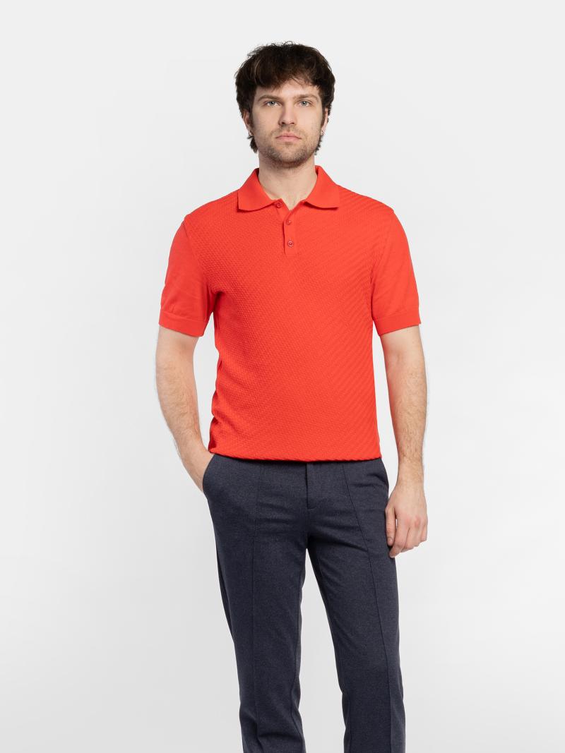 Мужское поло Arber красного цвета, созданное из тонкой пряжи 100% высококачественного хлопка. Натуральная ткань дарит ощущение легкости и исключительной мягкости, приятной к телу. Благодаря тонкой текстуре, поло отлично пропускает воздух, обеспечивая комфорт в течение всего дня. Поло с застежкой на 3 пуговицы гармонично дополнит гардероб в сочетании с брюками или джинсами. Модель на фото в размере 48. Рост: 183 см. Параметры: 94/90/100