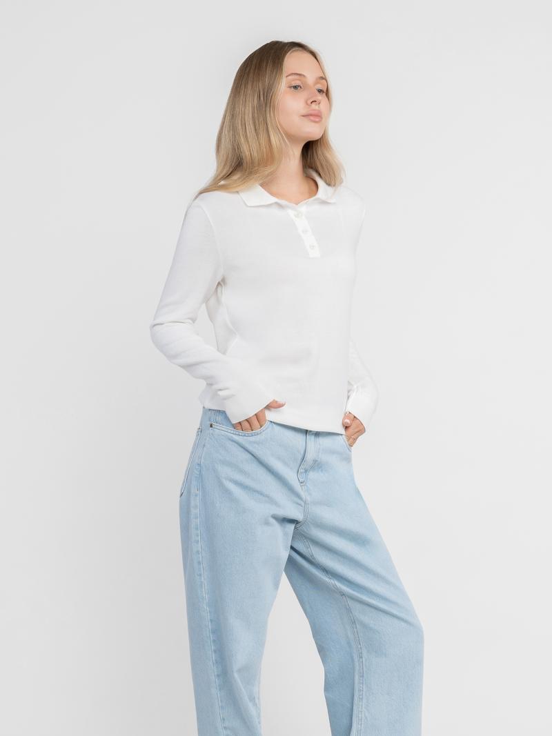 Поло женское KW10.02.00.53 Arber белое трикотажное с длинным рукавом