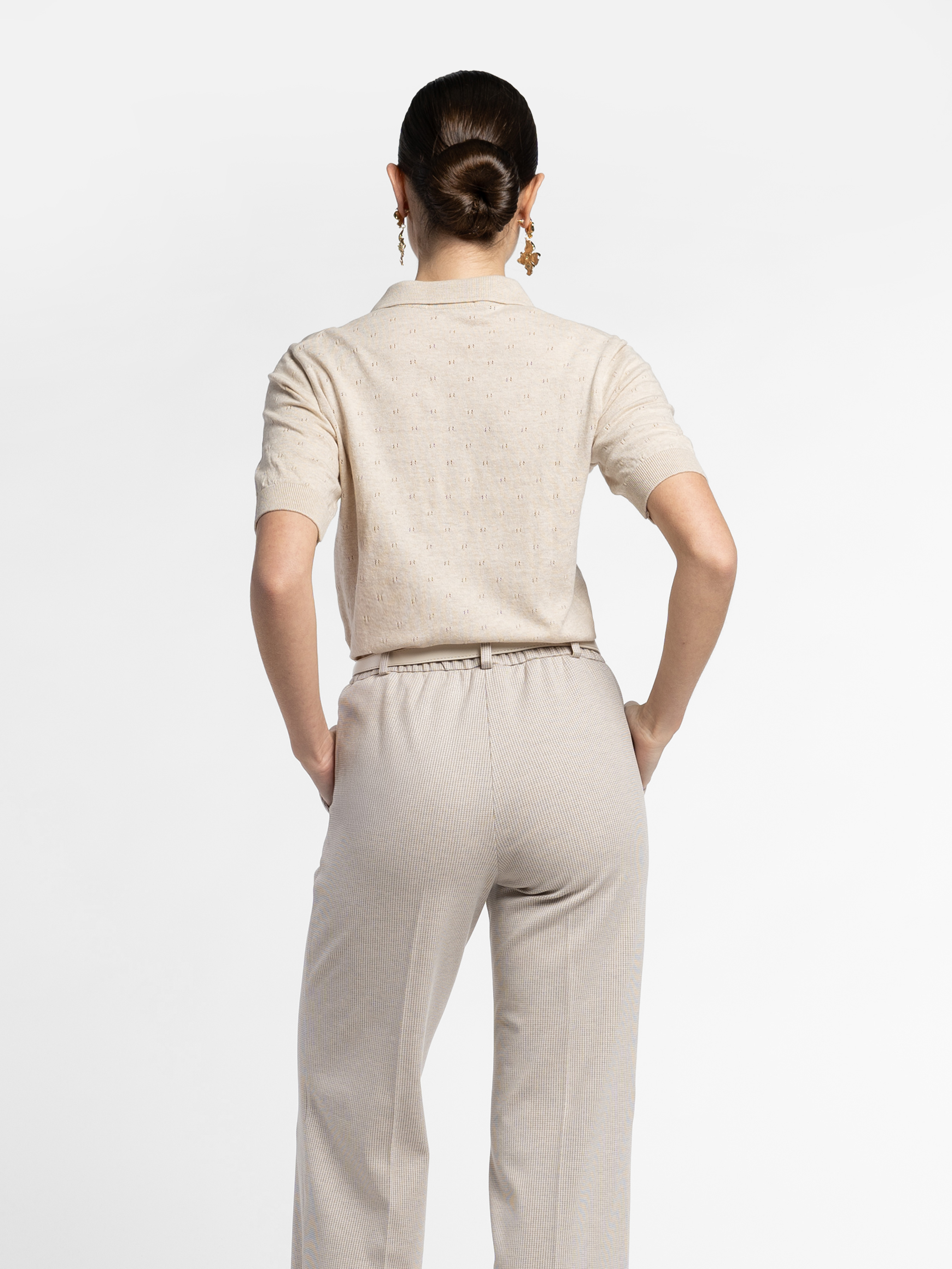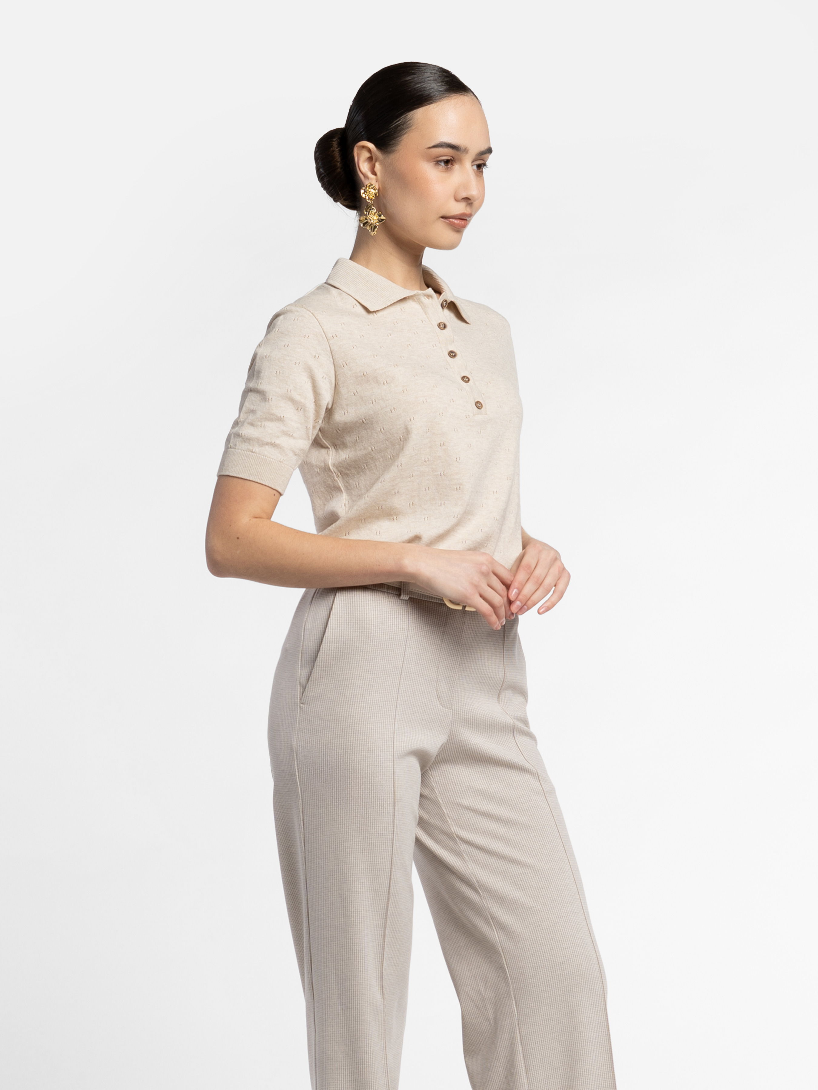 Женское поло Arber бежевого цвета, связанное из тонкой пряжи из 100% высококачественного хлопка. Легкая вязка из натурального волокна приятна на ощупь и обеспечивает комфорт в течение всего дня. Благодаря тонкой текстуре модель хорошо пропускает воздух и дарит ощущение свежести. Застежка на пуговицы придает образу современную сдержанную элегантность. Поло легко сочетается с брюками, джинсами или юбками, создавая уверенный и утонченный повседневный стиль. Модель на фото в размере S. Рост: 168 см. Параметры: 79/60/88