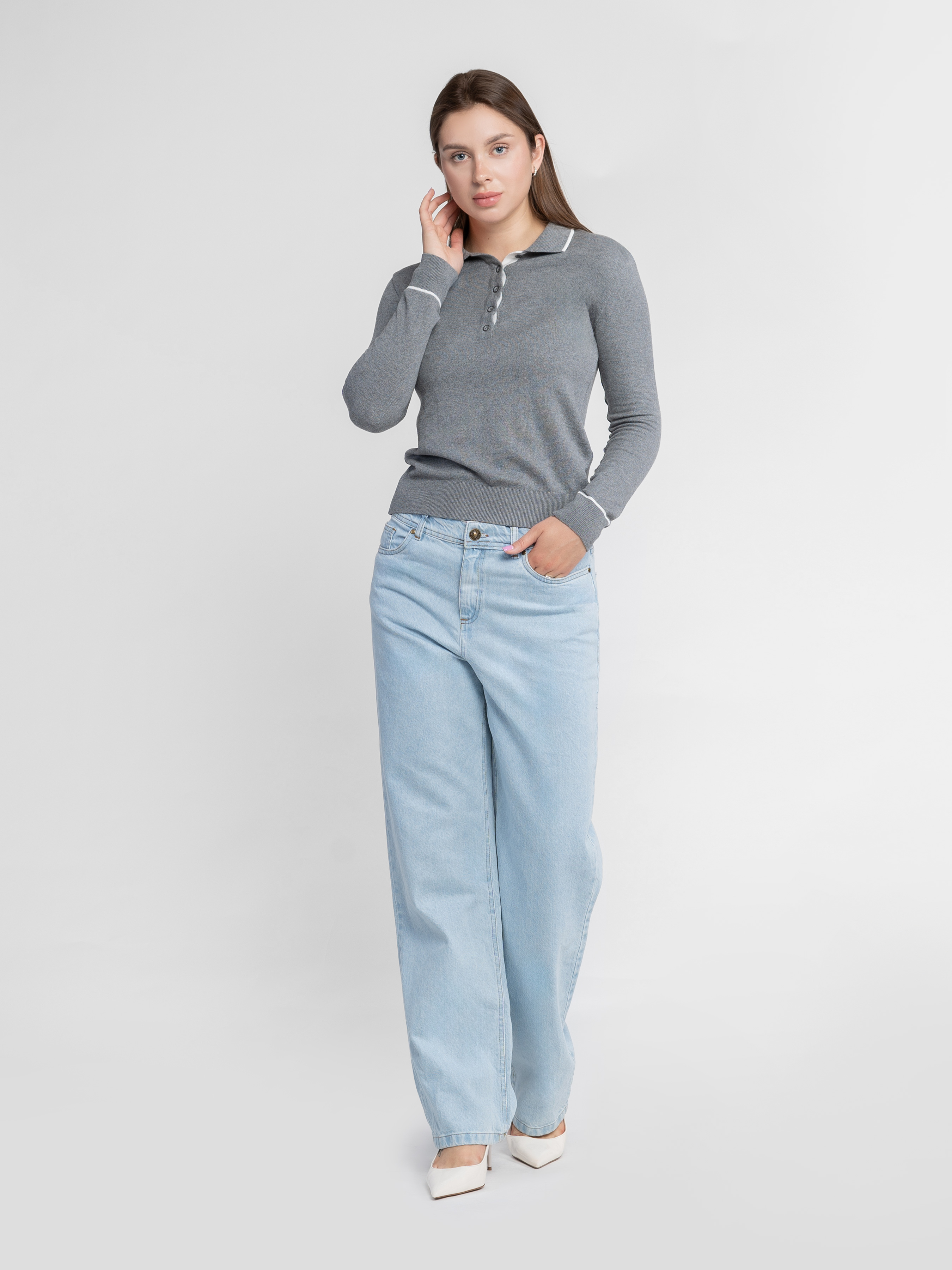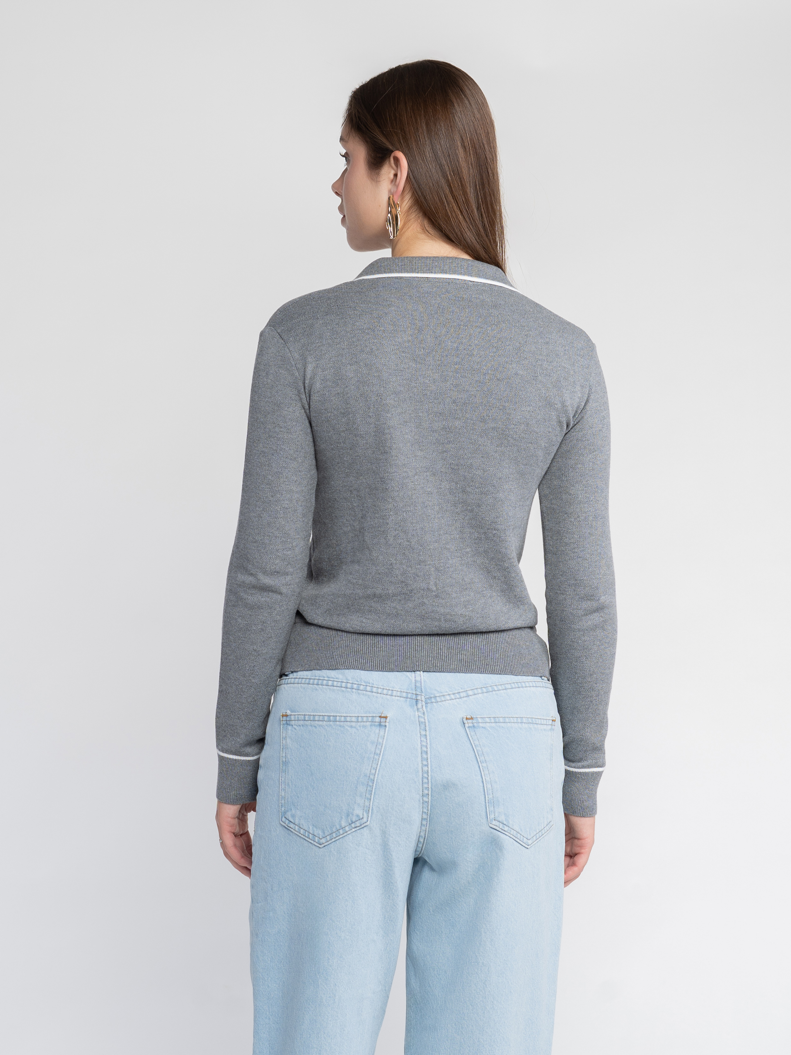 Женское поло Arber с длинным рукавом, серого цвета, связанное из 100% хлопка, нежно облегающее силуэт. Контрастные вставки на манжетах и застежка на пять пуговиц добавляют современного шарма. Идеальная база для джинсов, брюк или юбок. Модель на фото в размере 42. Рост: 168 см. Параметры: 86/65/96