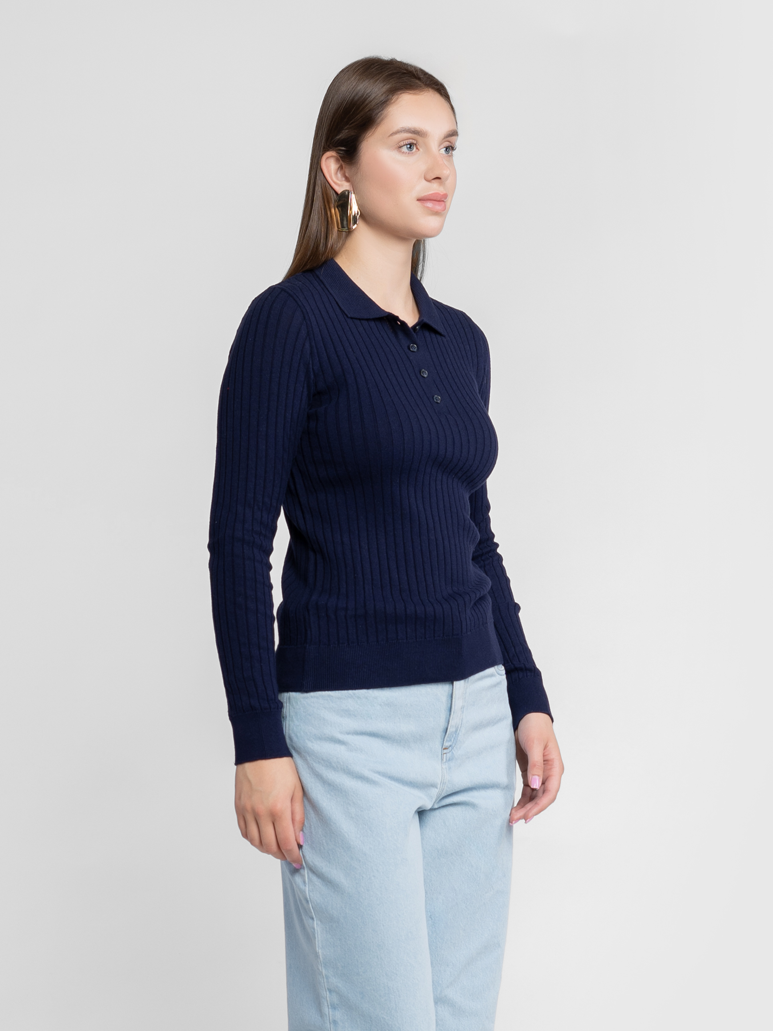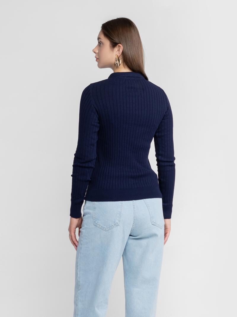 Поло женское с длинным рукавом KW10.07.09.53 Arber темно-синий в рубчик 100% хлопок