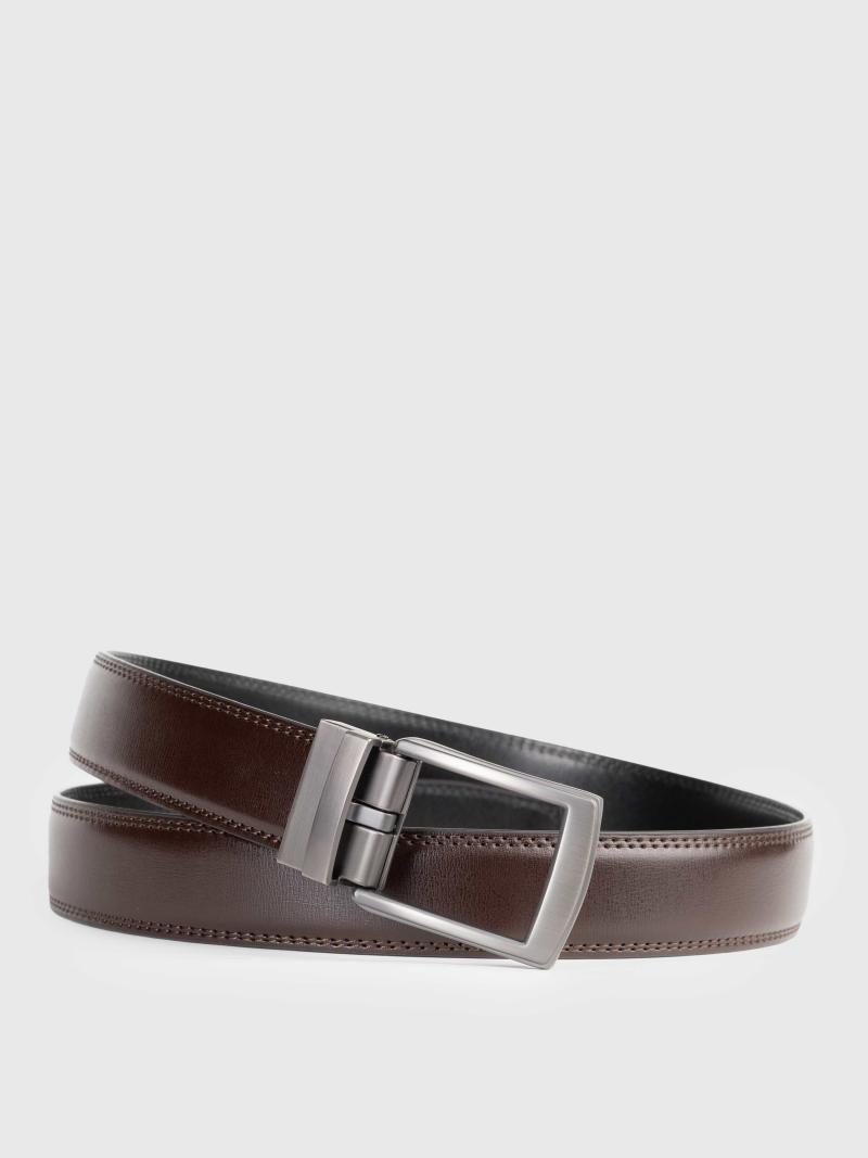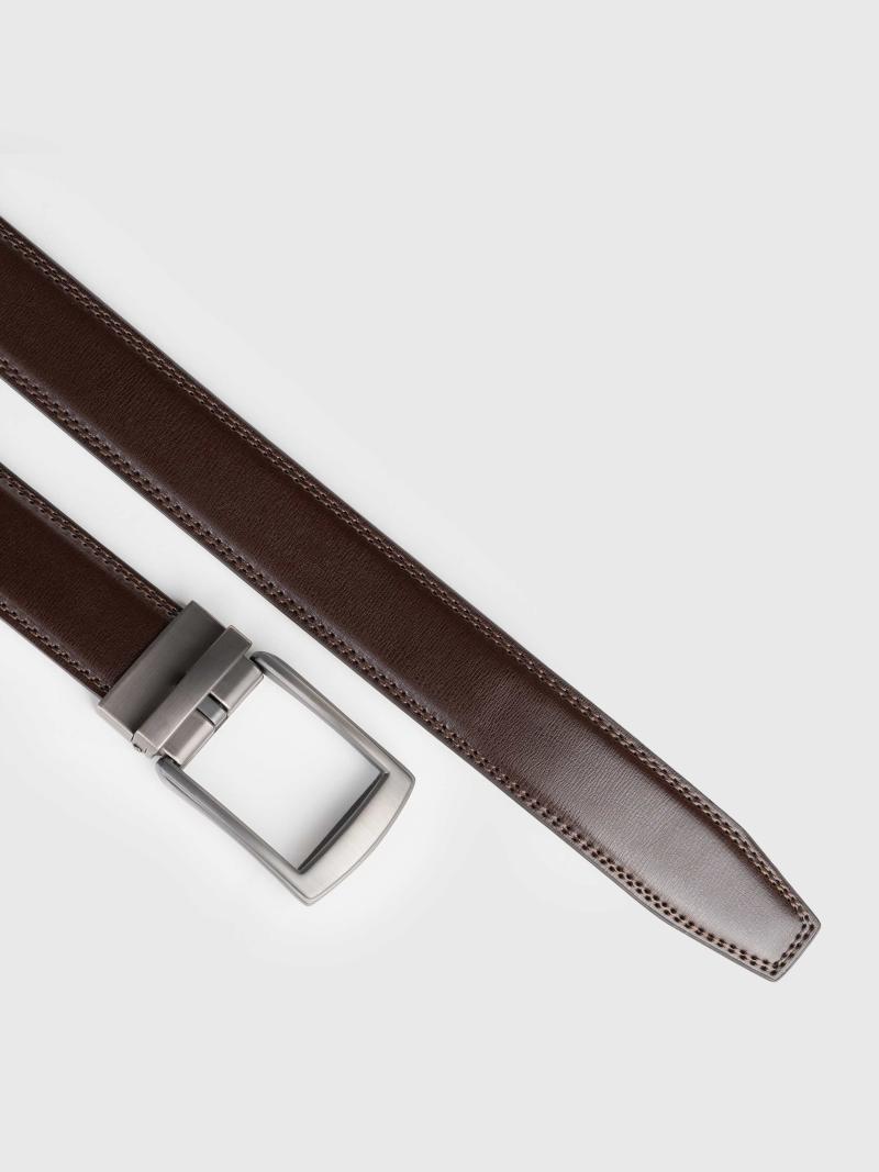 Мужской кожаный ремень коричневого цвета, из гладкой натуральной кожи дополнен сдержанной матовой пряжкой из металла. Ширина 35 мм обеспечивает идеальную посадку, как для деловых образов, так и для smart casual. Продуманный минимализм, подчеркивающий уверенность.