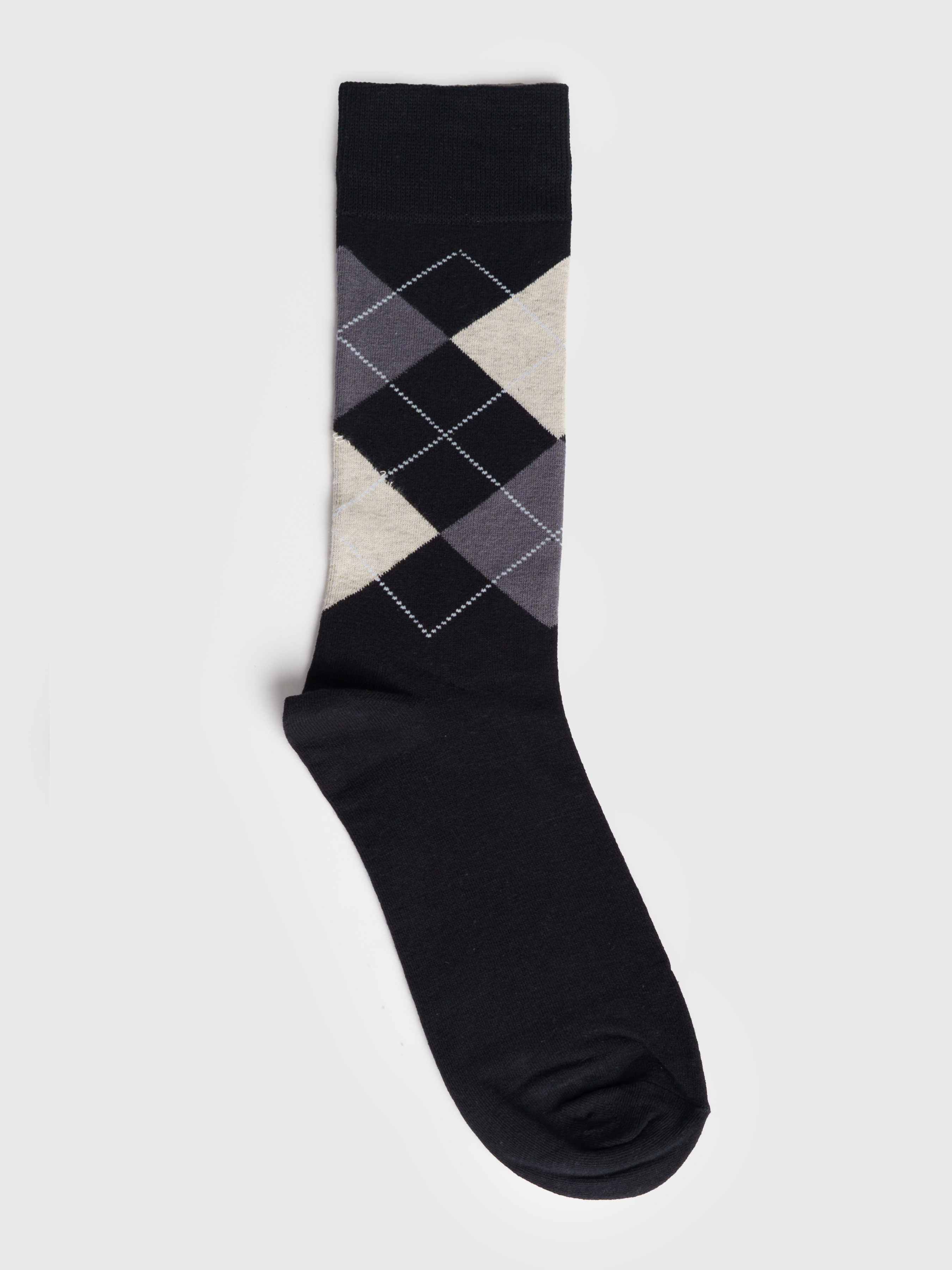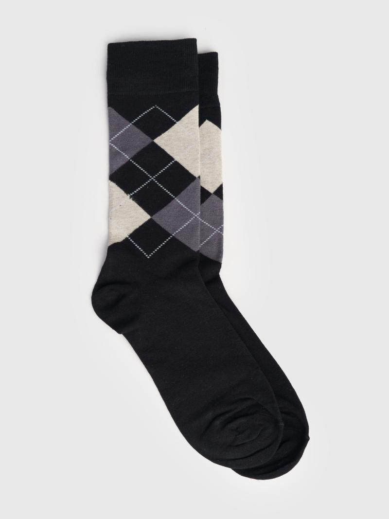 Мужские черные носки с узором ромбы, от Arber, обыкновенной длины из хлопчатобумажной смеси с эластаном.