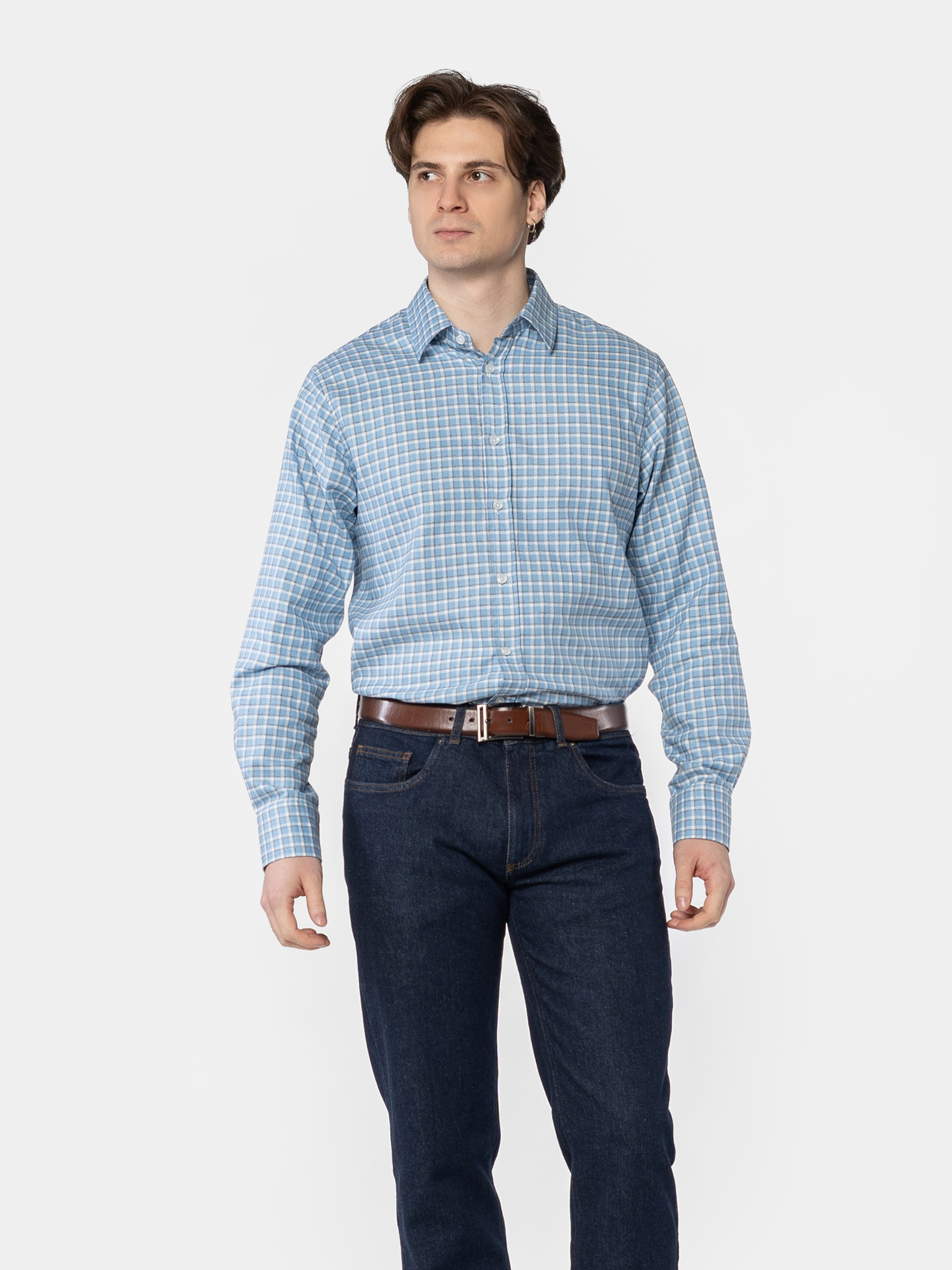 Рубашка мужская M05.22.23.611 Arber голубая в клетку из хлопка