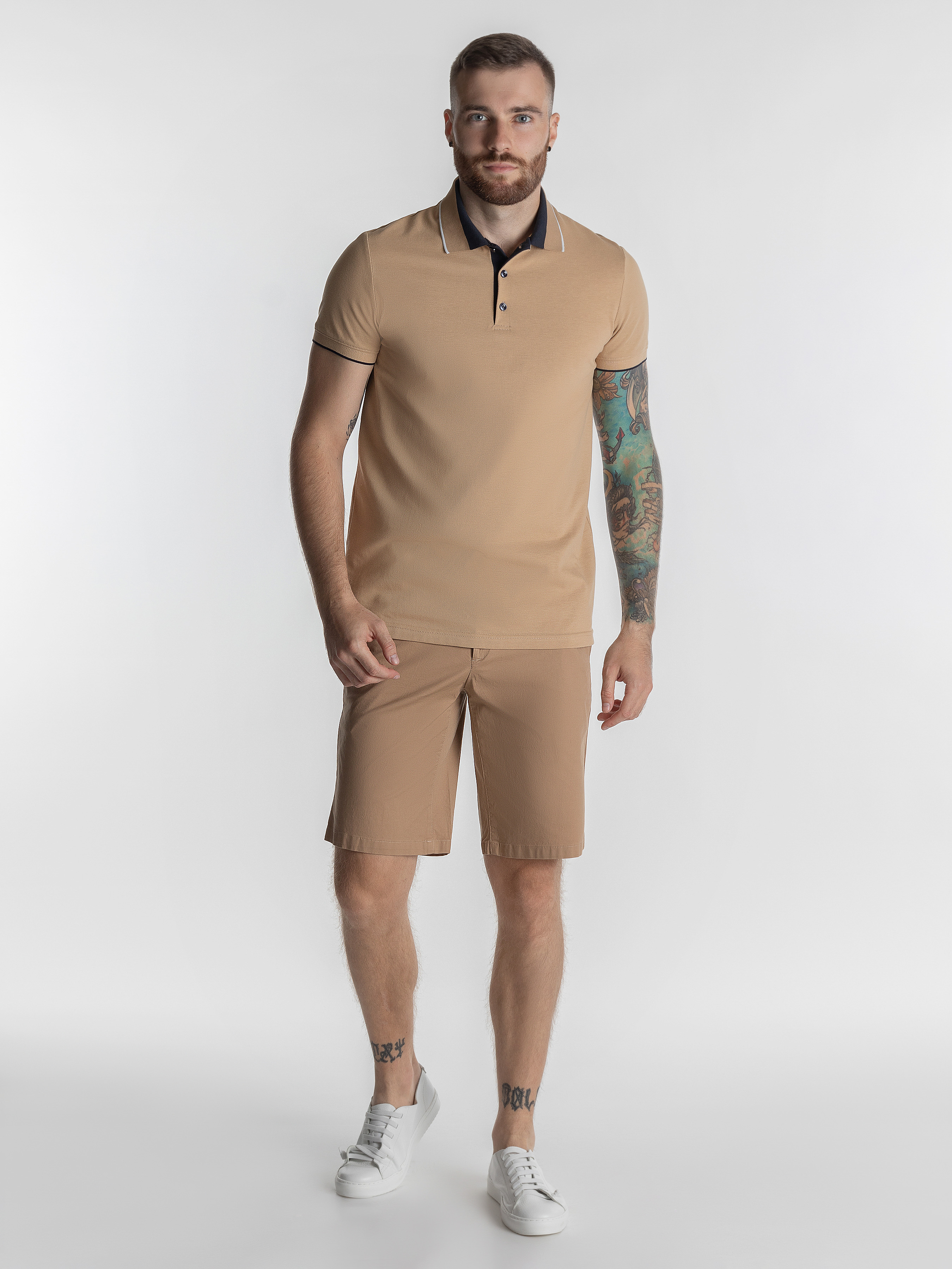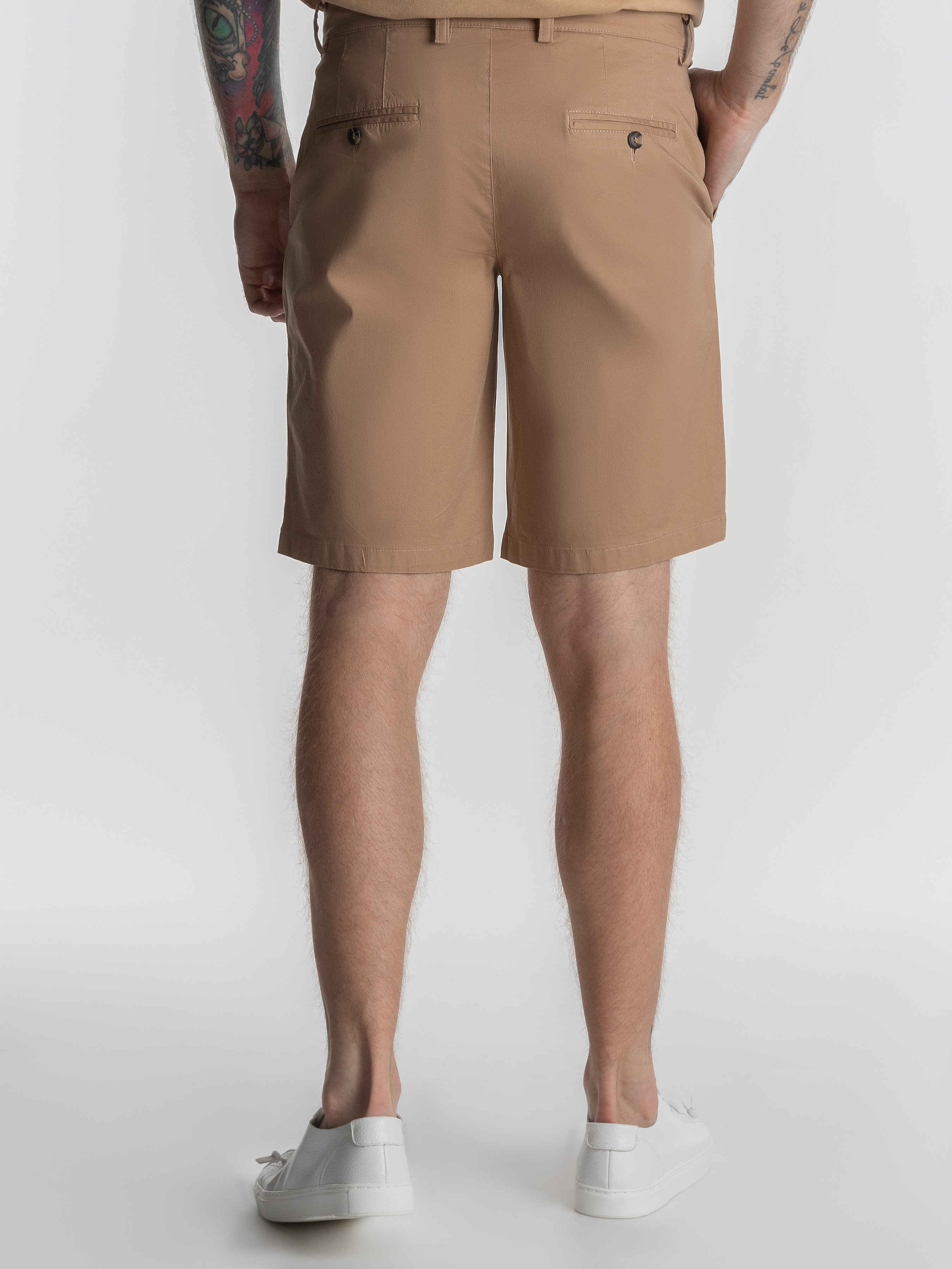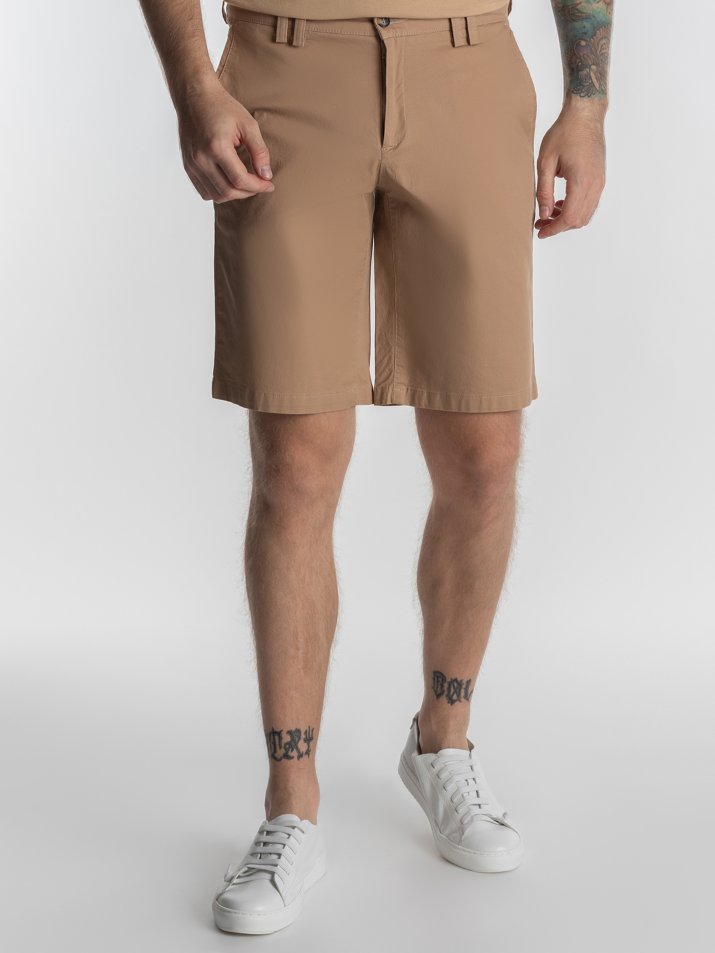 Бежевые мужские шорты Arber из экологичного хлопка с добавкой эластана. Эластичная ткань делает их комфортными и удобными. Модель с двумя наклонными боковыми карманами и двумя задними прорезными, застежка на молнию и пуговицу. Такие шорты будут удачным дополнением летнего гардероба.