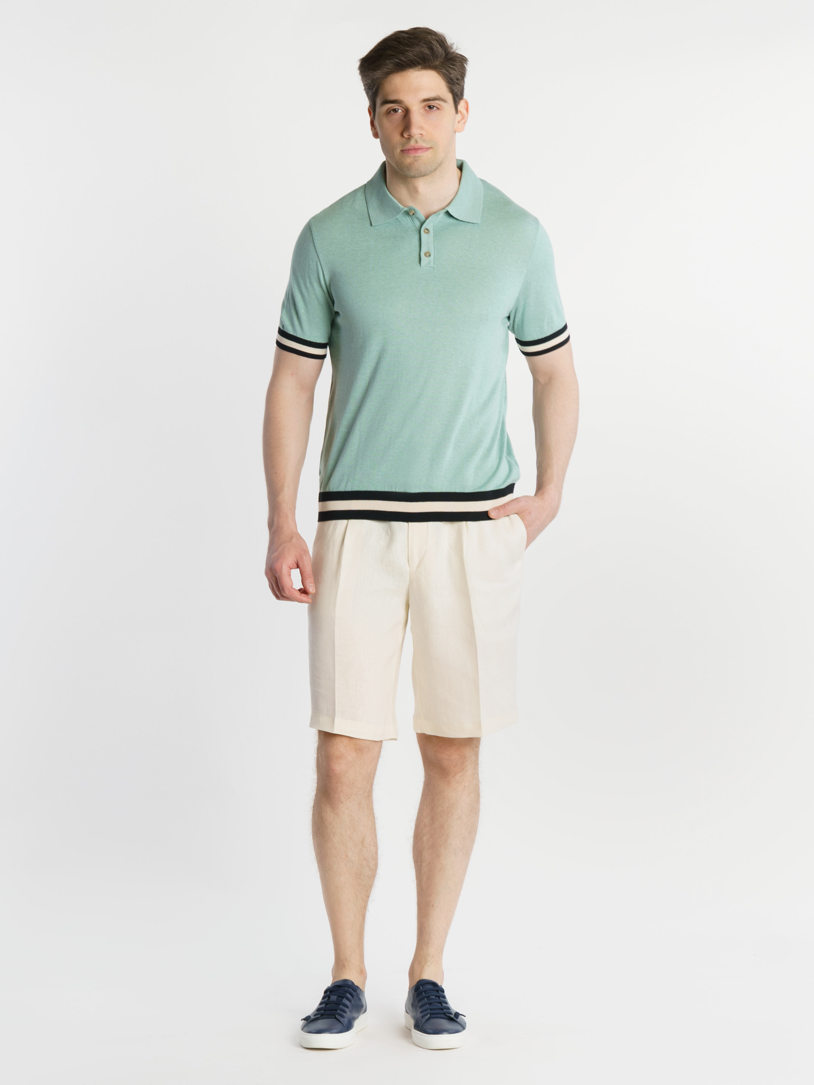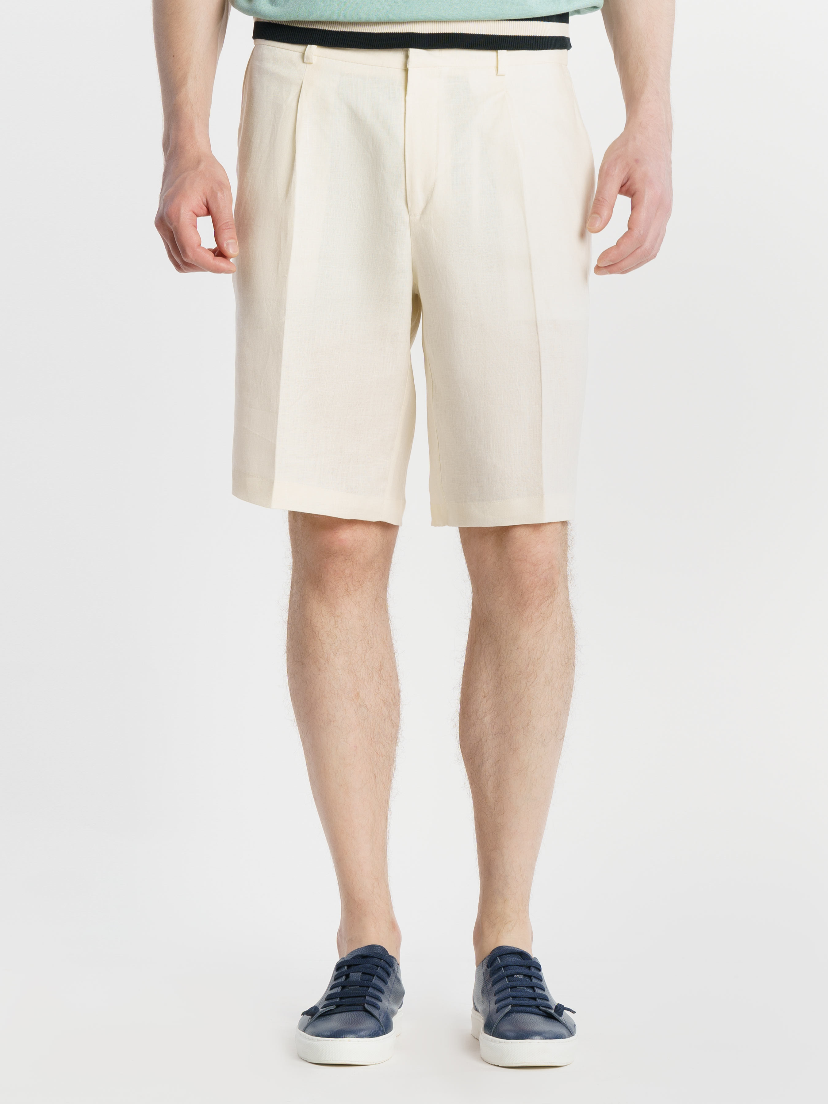 Мужские белые шорты Arber созданы из тонкой экологичной ткани на основе льна. Модель средней посадки, с двумя наклонными боковыми карманами и двумя прорезными задними. Льняная ткань хорошо пропускает воздух, впитывает влагу, поэтому шорты отлично подходят для теплой летней погоды. Дополнить образ можно тонким трикотажем, льняной рубашкой casual и неформальной обувью из замши.
