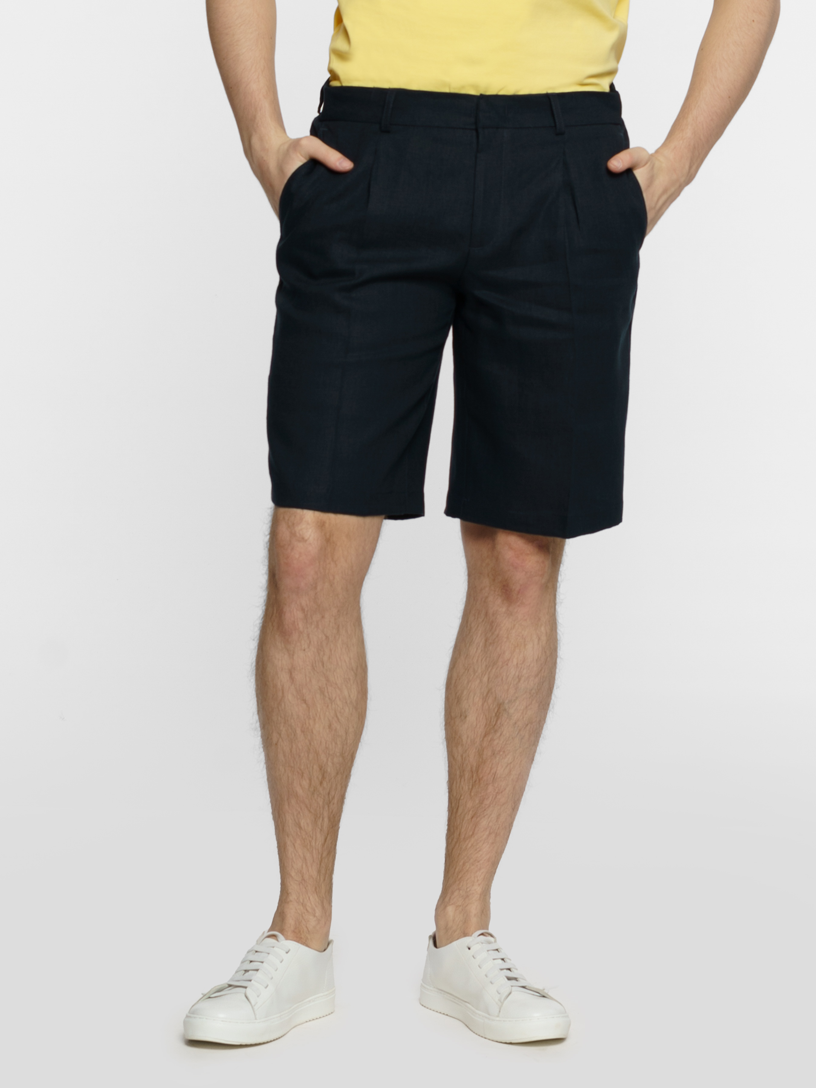 Мужские темно-синие шорты Arber созданы из льняной экологичной ткани. Модель средней посадки, с двумя наклонными боковыми карманами и двумя прорезными задними. Льняная ткань хорошо пропускает воздух, впитывает влагу, поэтому шорты отлично подходят для теплой летней погоды. Синий цвет удачно сочетается с множеством оттенков поло и трикотажа от светлых пастельных до ярких.