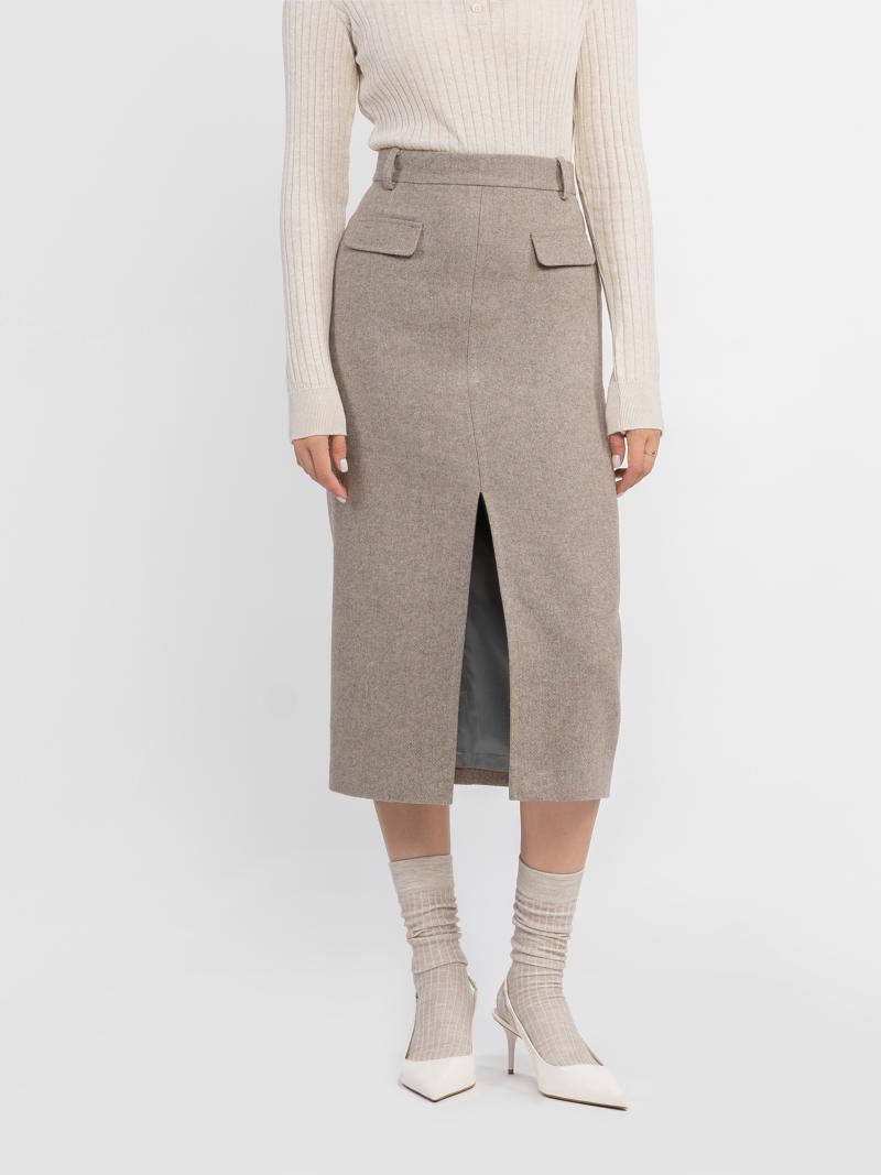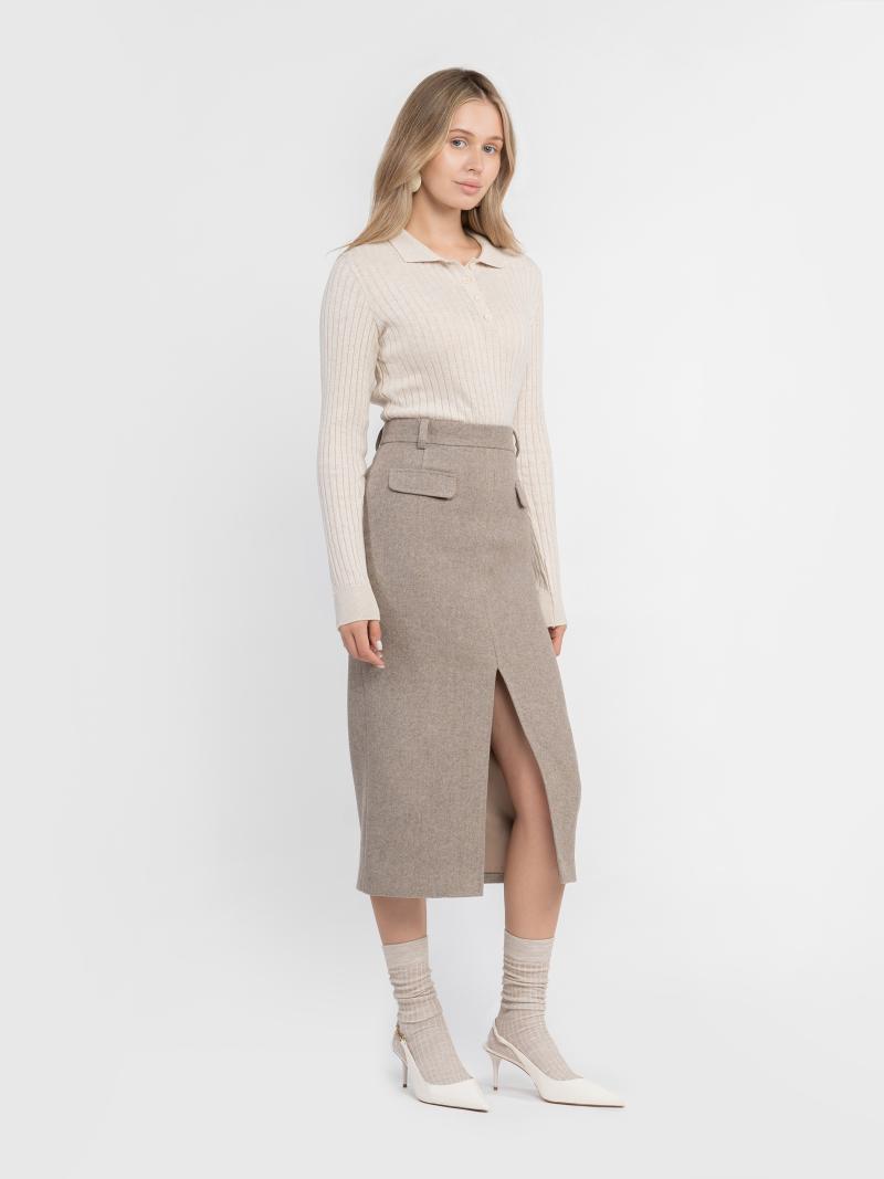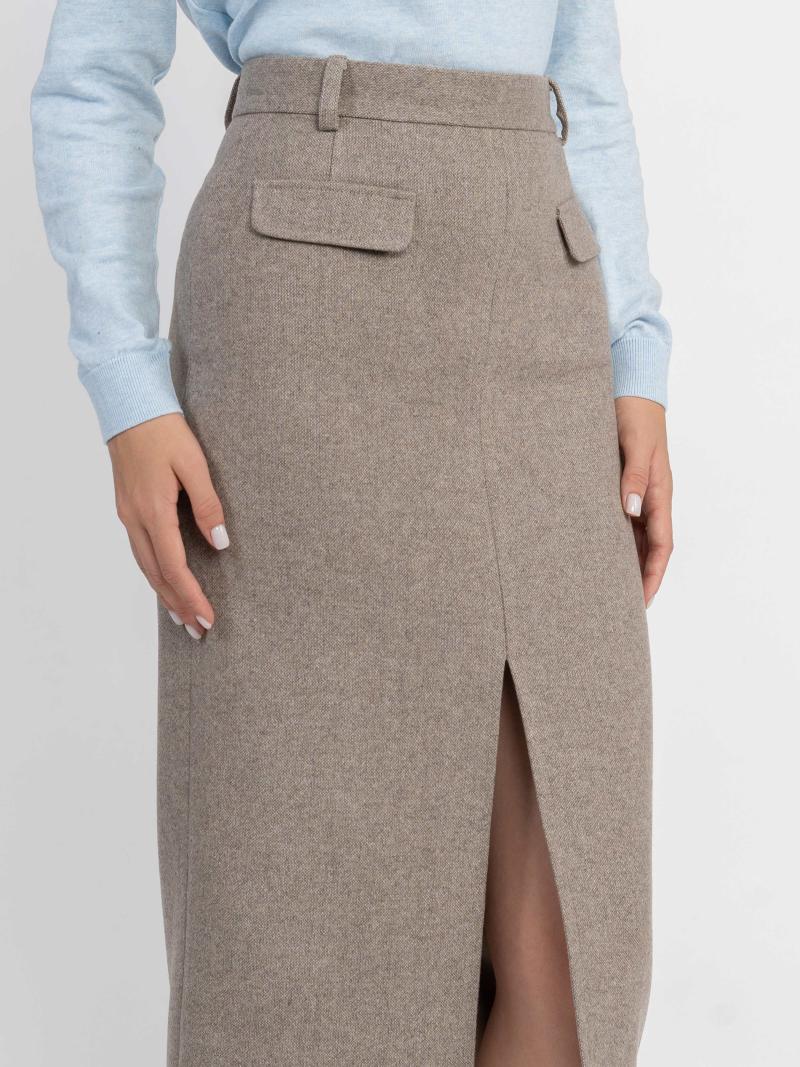 Юбка W23.07.16.531 Arber бежевая с разрезом шерстяная