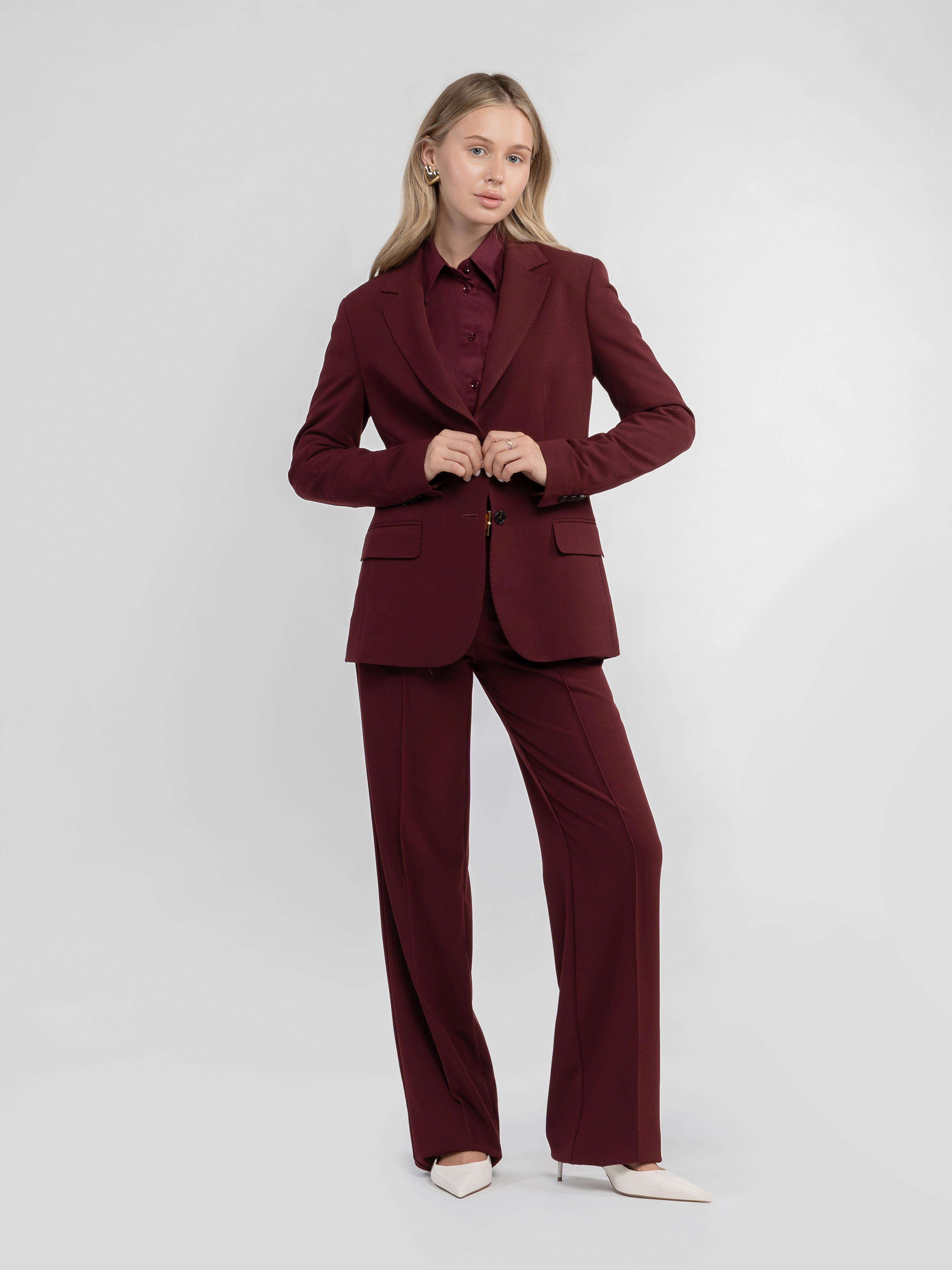 Женский жакет Arber цвета бордо, выполненный из мягкой ткани с добавлением вискозы. Полуприталенный крой создает гармоничный баланс силы и элегантности. Однобортная застежка на пуговицы, прямые лацканы и два прорезных кармана с клапаном обеспечивают идеальную посадку и функциональность. Идеально дополняет как современные брюки W01.07.18.533, так и стильные юбки W23.02.18.533, создавая изысканный total look. Модель на фото в размере 42. Рост: 168 см. Параметры: 80/62/87