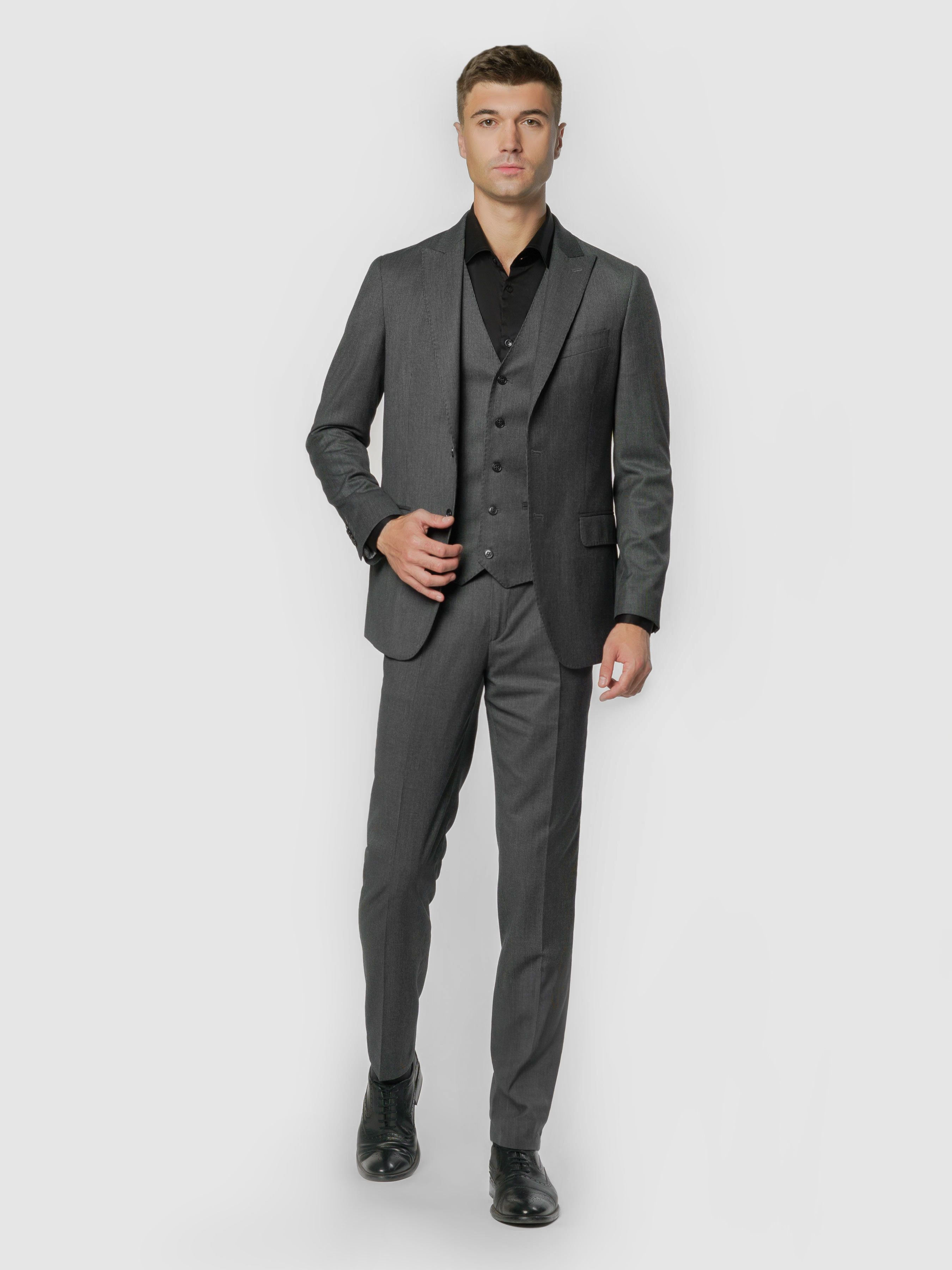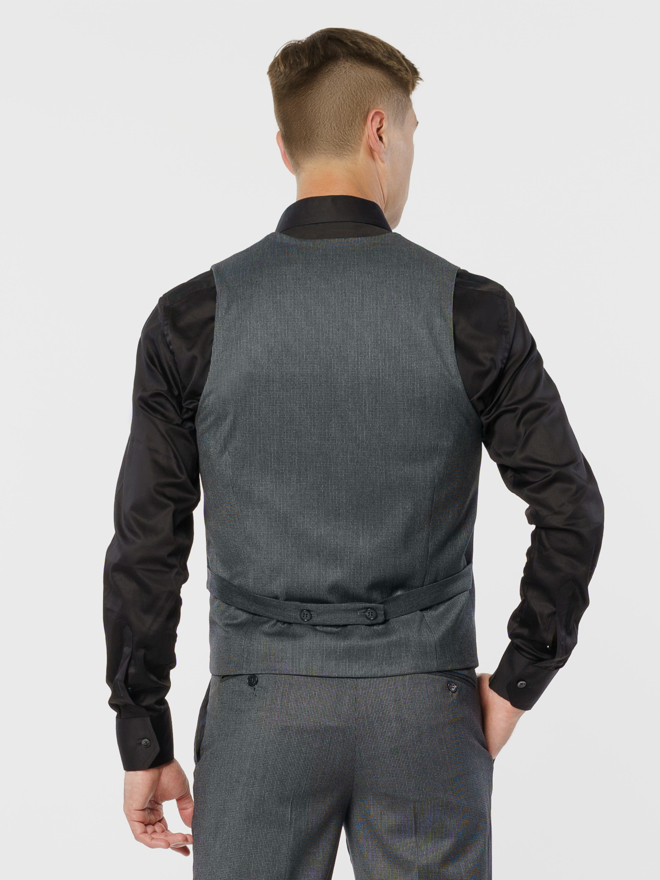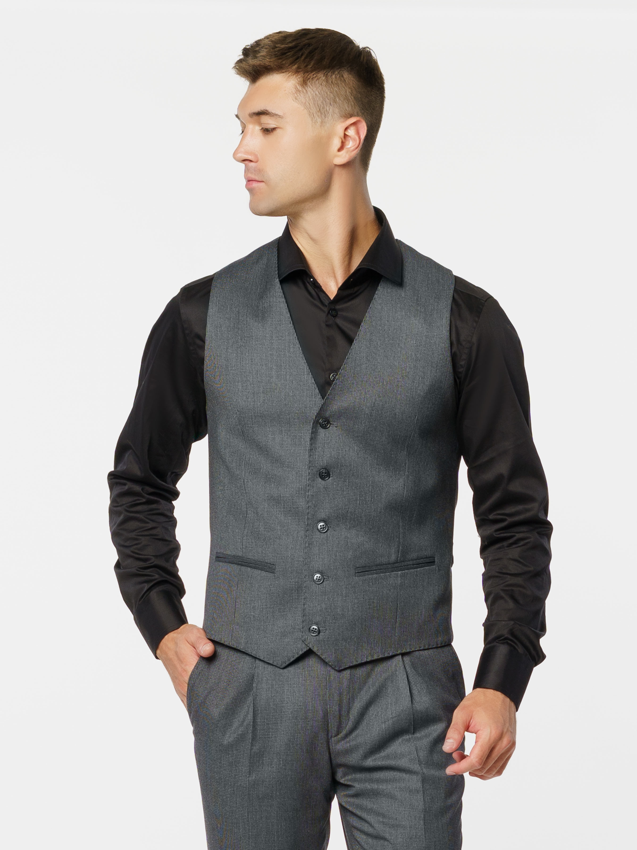Мужской костюмный жилет Arber темно-серого цвета, созданный из инновационной эластичной ткани на основе вискозы с эластаном, которая позволяет чувствовать себя комфортно, практична, не мнется, устойчива к износу. Модель однобортная, с застежкой на пуговицах, прилегающего силуэта, выгодно сидит на фигуре. Жилет может дополнить костюм из такой же ткани: M03.02.12.331.