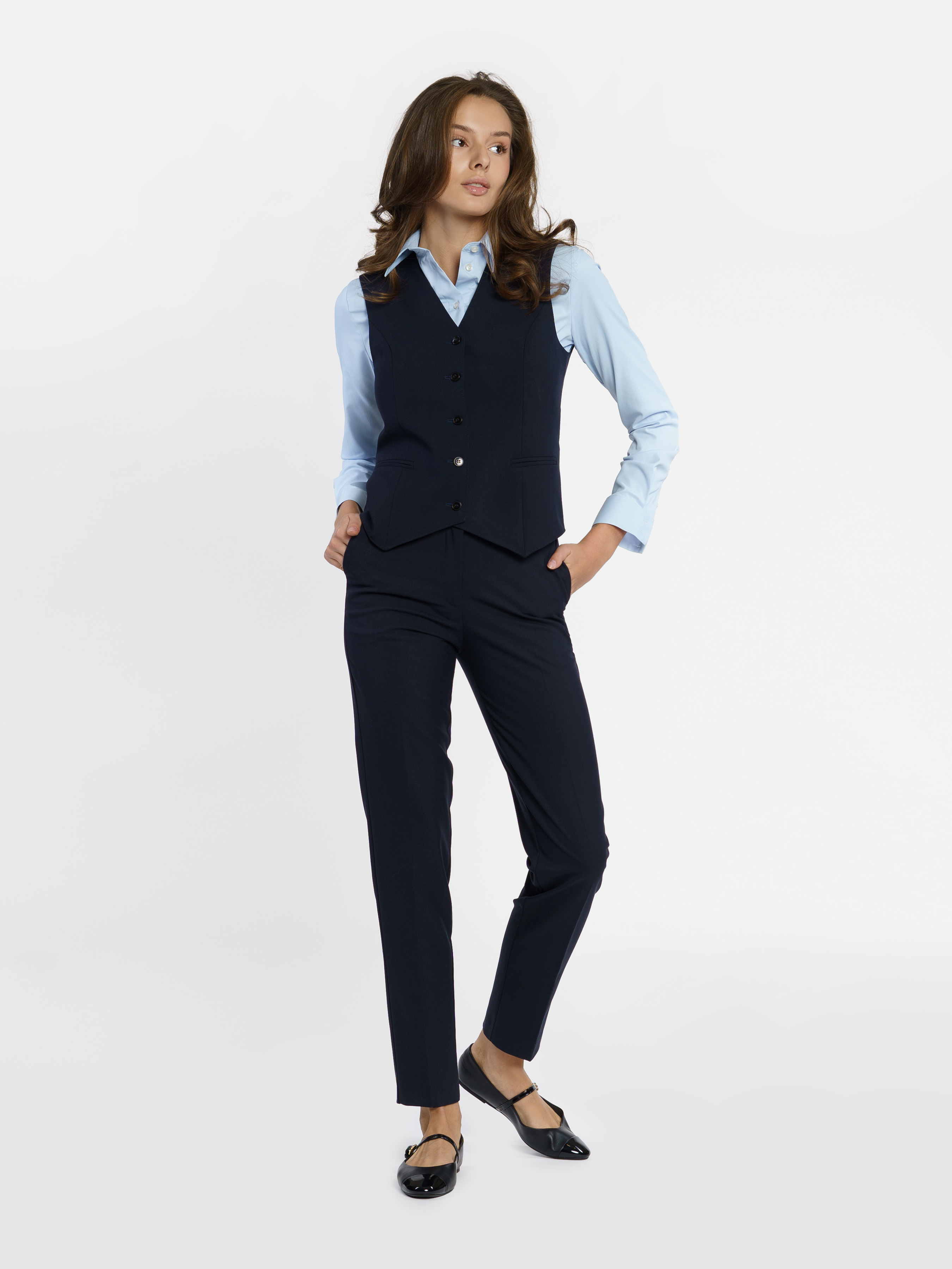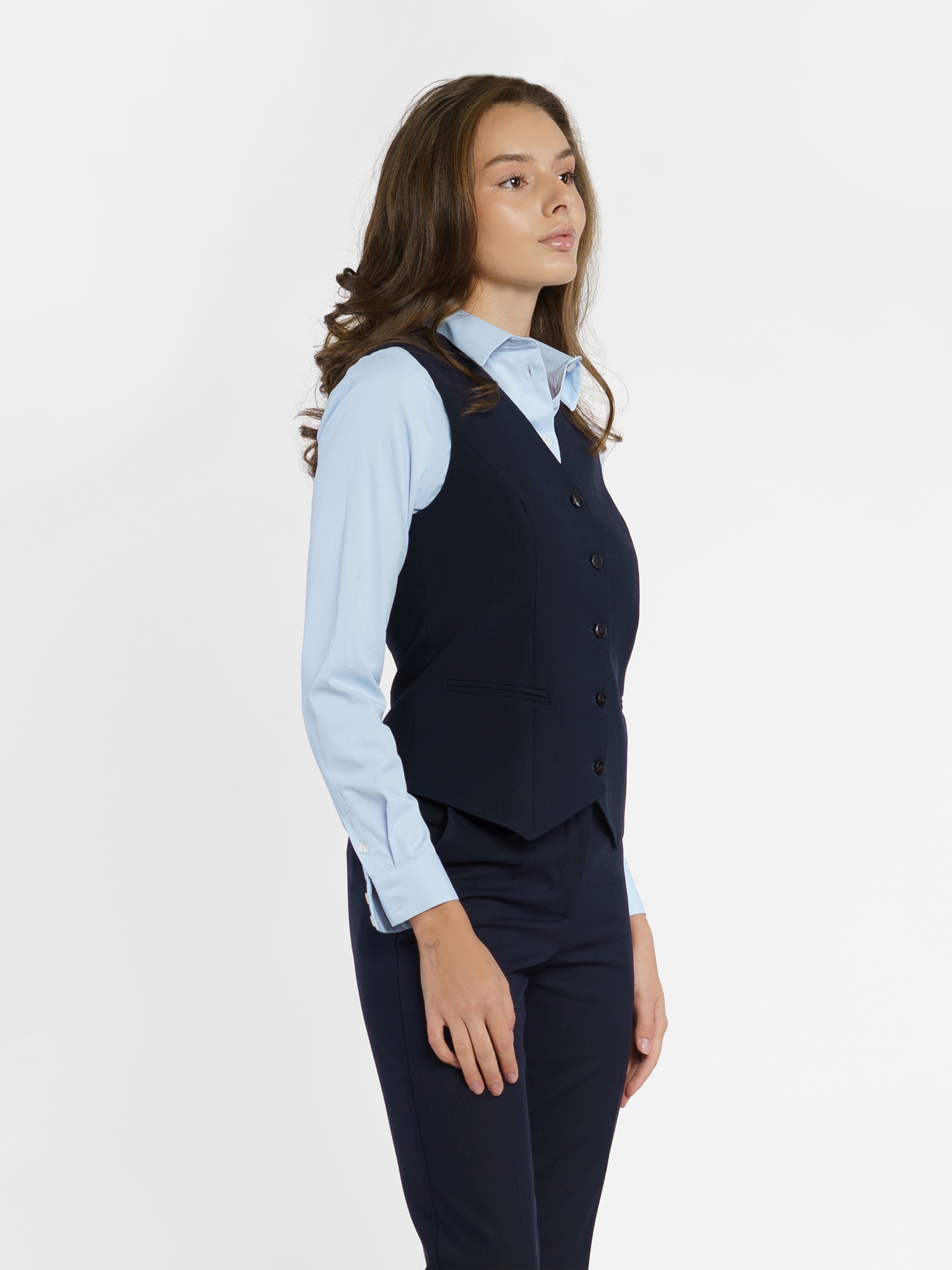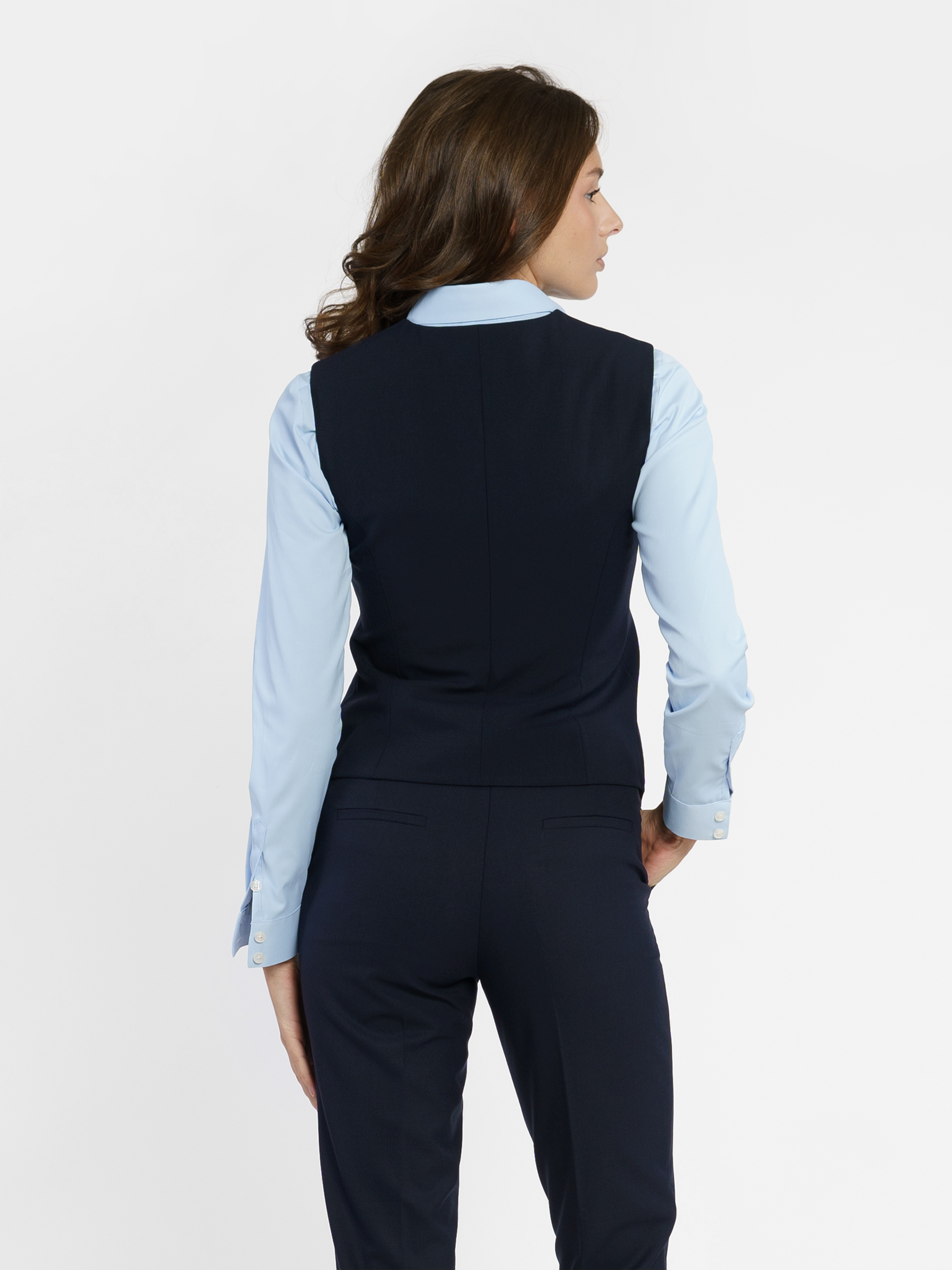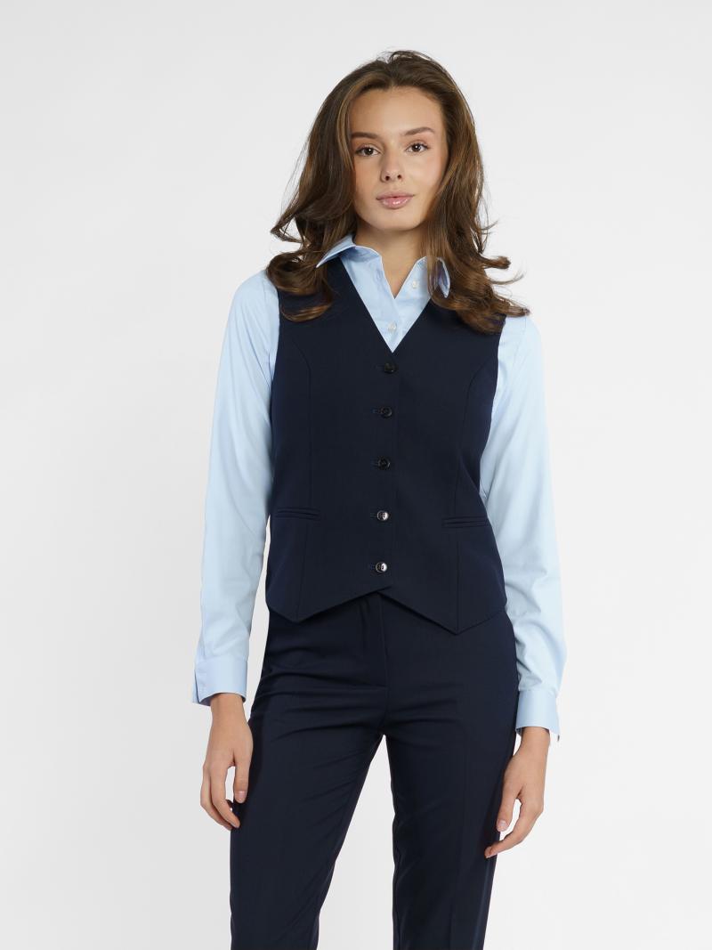 Женский жилет Arber синего цвета из инновационной ткани с добавлением шелковистой вискозы. Модель прилегающего силуэта выгодно подчеркивает фигуру, и придает элегантность образу. Прекрасно сочетается с брюками и джинсами. Модель на фото в размере 42. Рост: 178 см. Параметры: 90/78/94